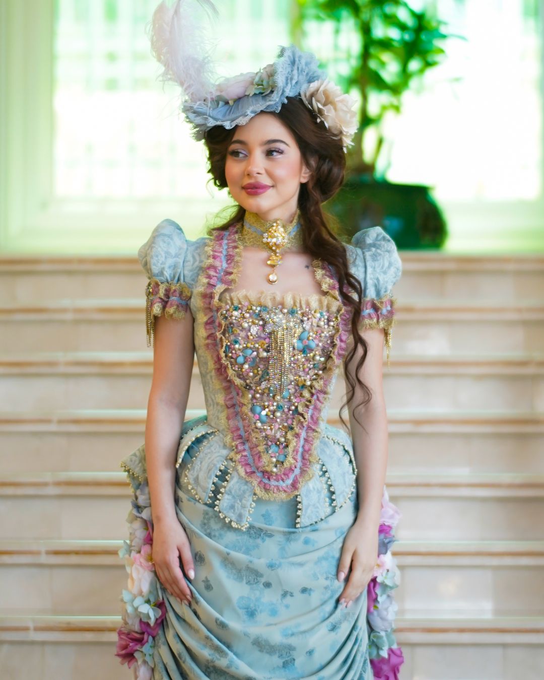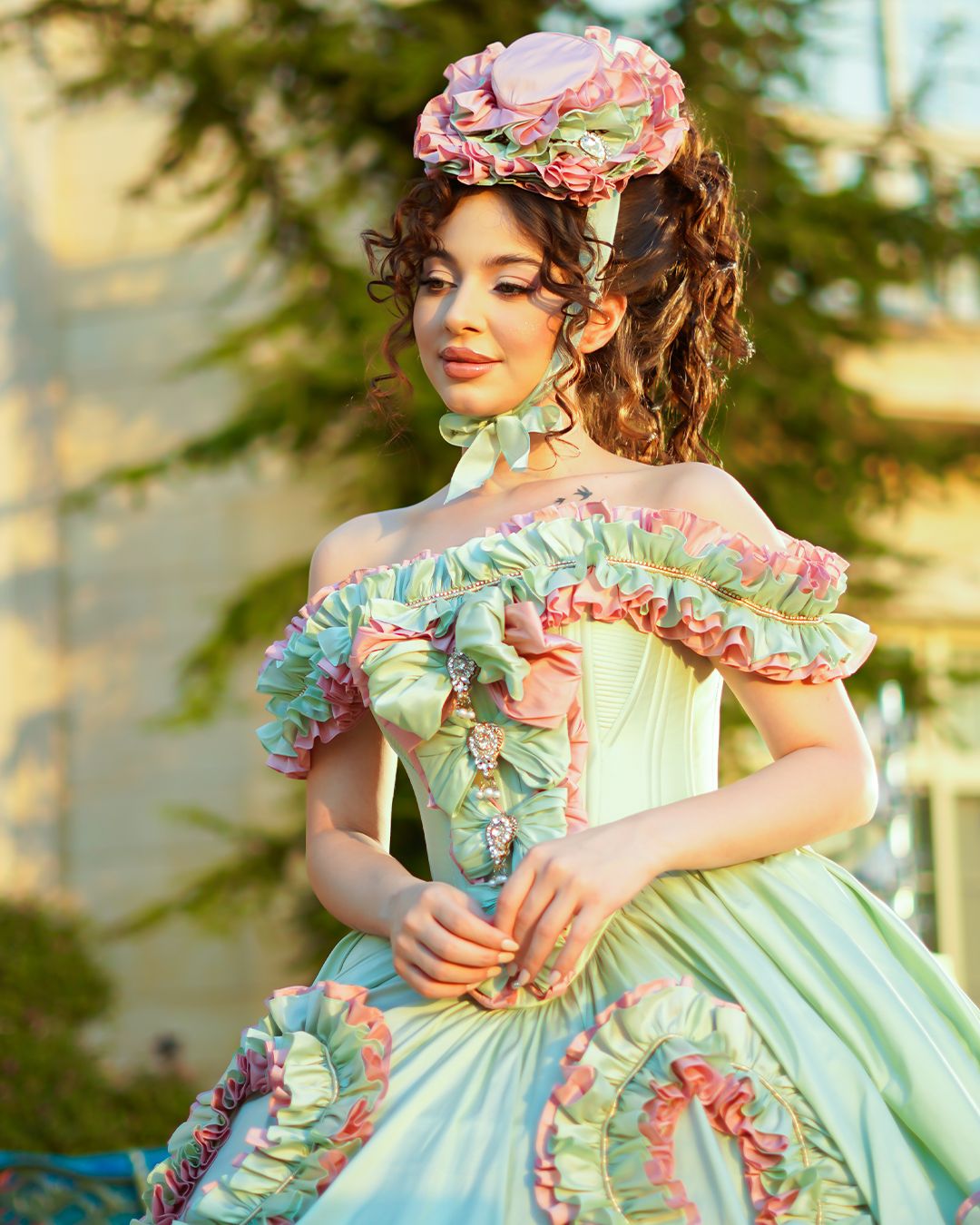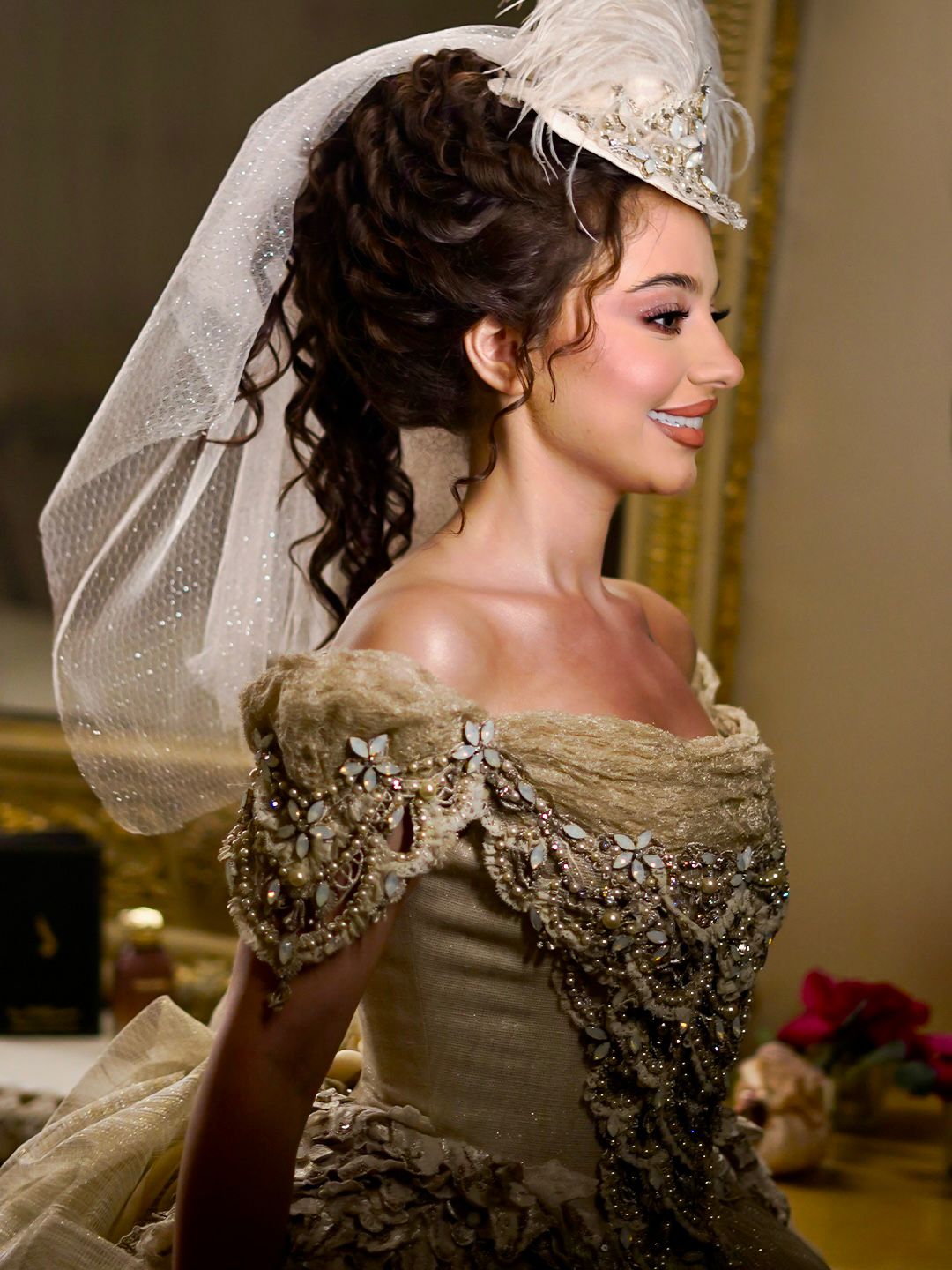اختارت البريدي أن تعيد إلى الحياة روح العصر الفيكتوري، لا بصفته تاريخاً منصرماً، بل كحالة فنية متجددة. صمّمت لإسماعيل أزياء توحّدت في رؤيتها، تنوّعت في أشكالها، لكنها ظلّت مترابطة بخيط واحد من الرقي، لتجعل من المغنية بطلة أسطورية خرجت من كتب الحكايات القديمة. في هذه الأزياء، يطلّ البذخ بوجهه النبيل، والأنوثة بسموها، كأن كل ثوب هو مرآة لحنينٍ نبيل أكثر من كونه قطعة قماش.