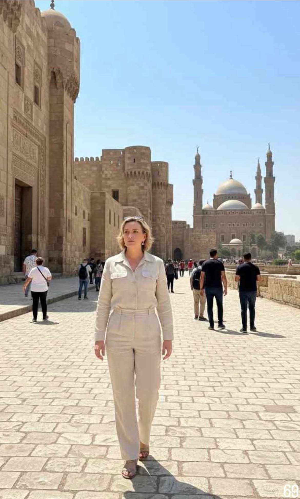 ترتدي الزي المصري التقليدي وتقف أمام أهرامات الجيزة أخر عجائب الدنيا السبعة pic.twitter.com/JP3R6RZD8G