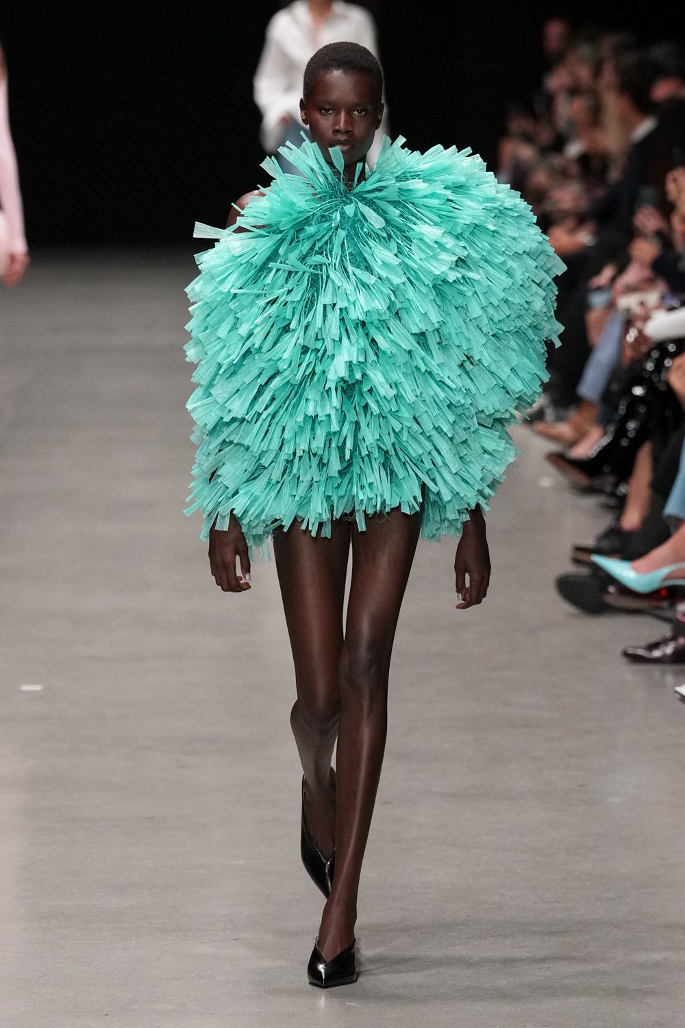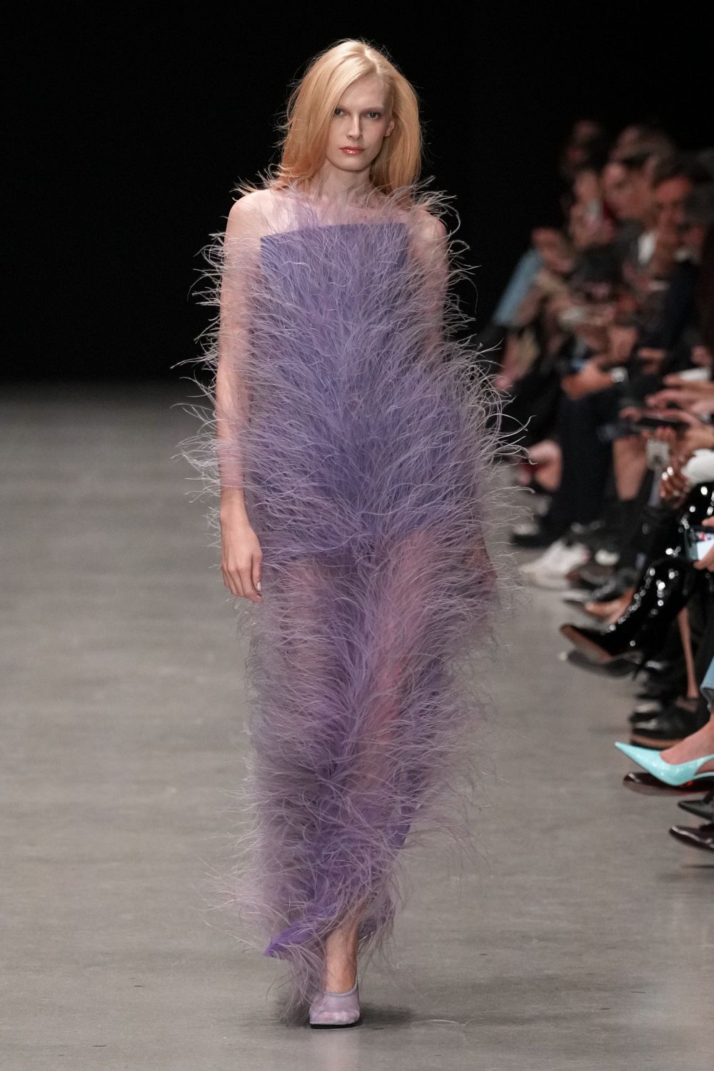 جينز PURETECH الذي ينقي الهواء، وترتر قابل للتحلل، وريش Fevvers النباتي الذي أضفى لمسة ساحرة على فستان أليكس كونساني الختامي باللون البنفسجي.
