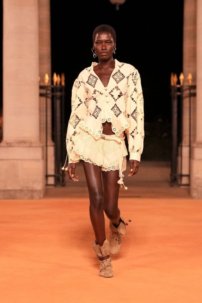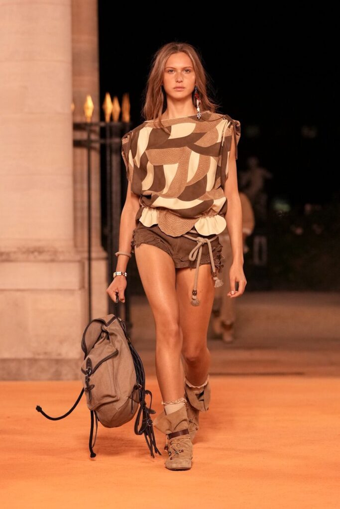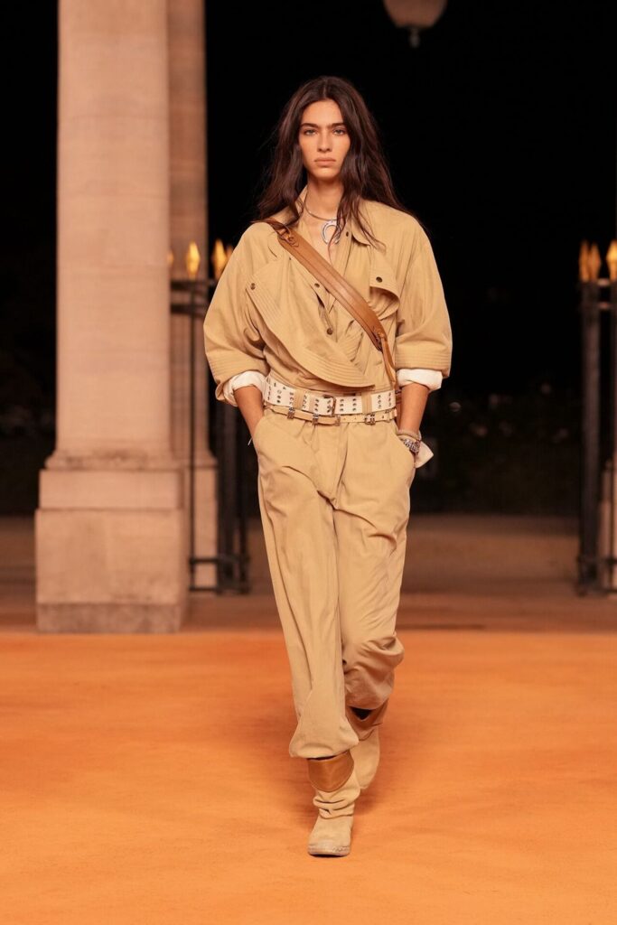 مستلهمةً من أجواء الصحراء والحرية. تحت إشراف المديرة الإبداعية الجديدة كيم بيكر، التي تولت القيادة بعد 30 عامًا من إيزابيل مارانت نفسها، قدمت المجموعة مزيجًا من الأزياء العملية والأنثوية، مع الحفاظ على روح الدار الباريسية الحرة.