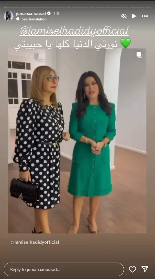 نشرت مراد الفيديو الخاص بالإعلامية المصرية خلال زيارتها لمعرضها، عبر خاصية ستوري في "إنستغرام" وعلقت بالقول: نورتي الدنيا كلها ياحبيبتي.