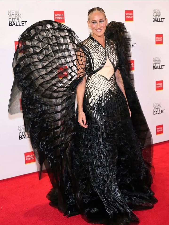 ومن بين الضيوف والمبدعين، كانت سارة جيسيكا باركر إذ لم تكتفِ بالحضور، بل جاءت محاطةً بأجنحةٍ من الخيال، تحملها لا الأرض ولا الريح، بل الفنّ نفسه.