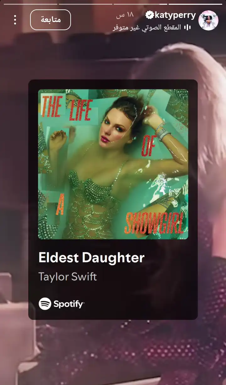 شاركت كاتي بيري، عبر خاصية "الستوري" عبر حسابها في منصة "إنستغرام"، لقطة شاشة أثناء استماعها إلى أغنية "Eldest Daughter" من ألبوم تايلور سويفت، مرفقة الصورة بإشارات إعجاب واضحة، لتؤكد أن الماضي لم يعد عائقاً بين النجمتين، معلقة: "أحبها كثيراً".
