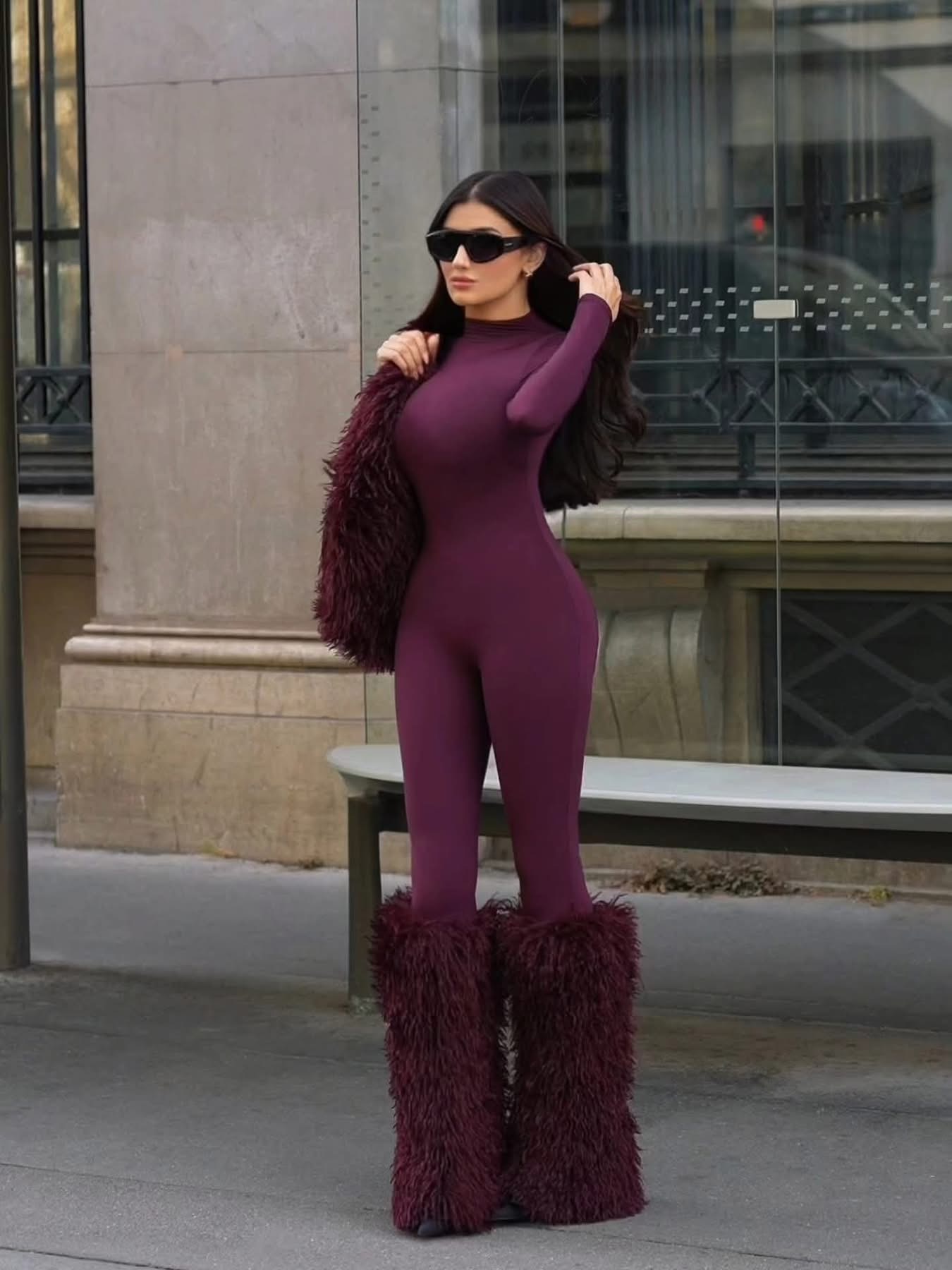 في مكان ما في إحدى الشوارع سارت مي عمر وكأنها قادمة من لوحة خريفية نابضة بالأناقة. ارتدت جمبسوت بلون البرغندي العميق، عانق تفاصيل جسدها برهافة وأناقة.