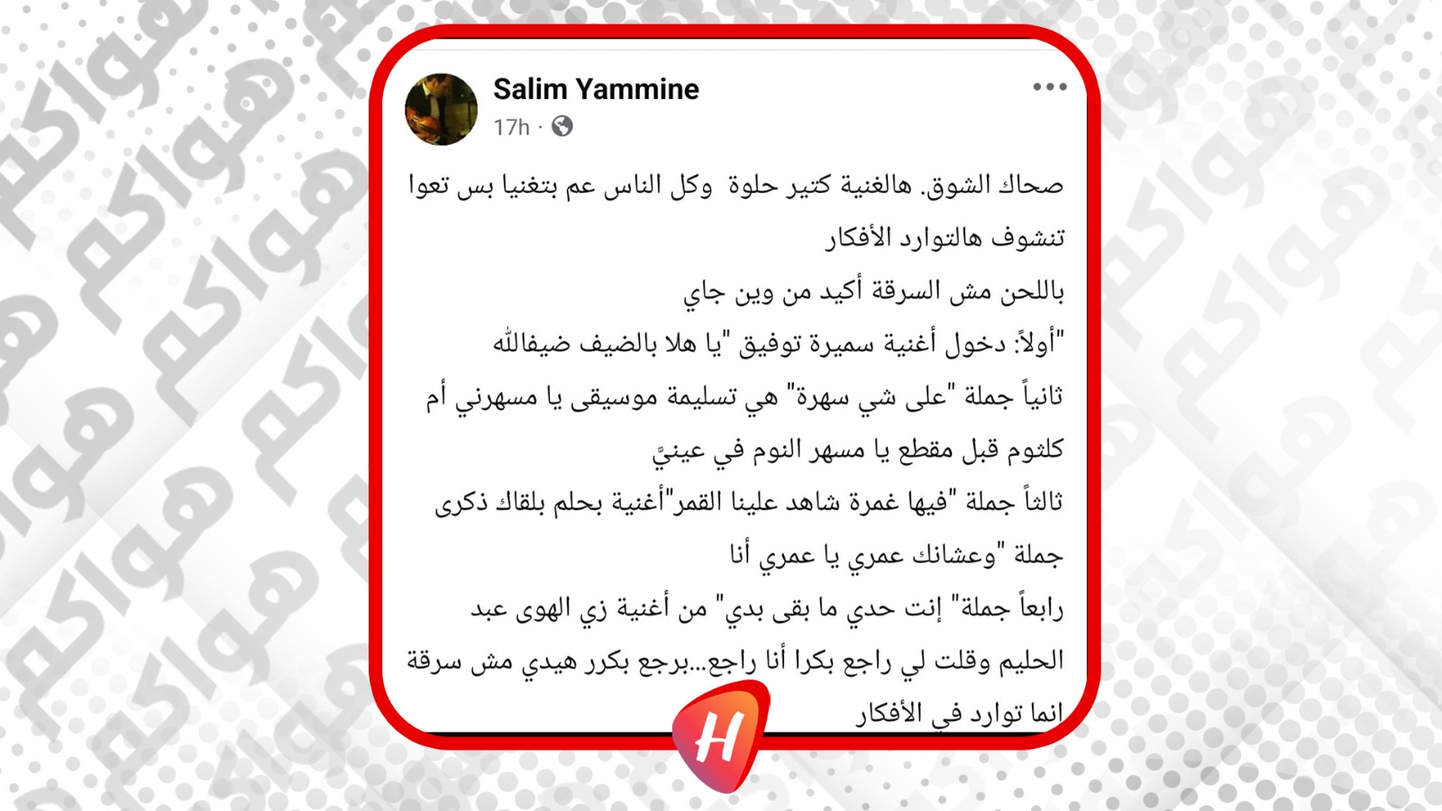 غير أنّ اللافت في هذه الأغنية هي مجموعة ألحان بلحنٍ واحد، وهو ما لفت إليه الملحن والفنان سليم يمّين عبر صفحته على فايسبوك، معتبرًا أنّ الأمر ليس إلا توارد "توارد الألحان"، أي تشابه بعض الجمل الموسيقية مع مقاطع من أعمال خالدة في الذاكرة العربية، دون أن يُعد ذلك سرقة فنية أو اقتباسًا متعمّدًا بحسب يمّين.