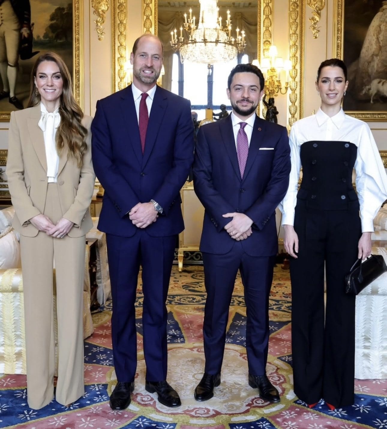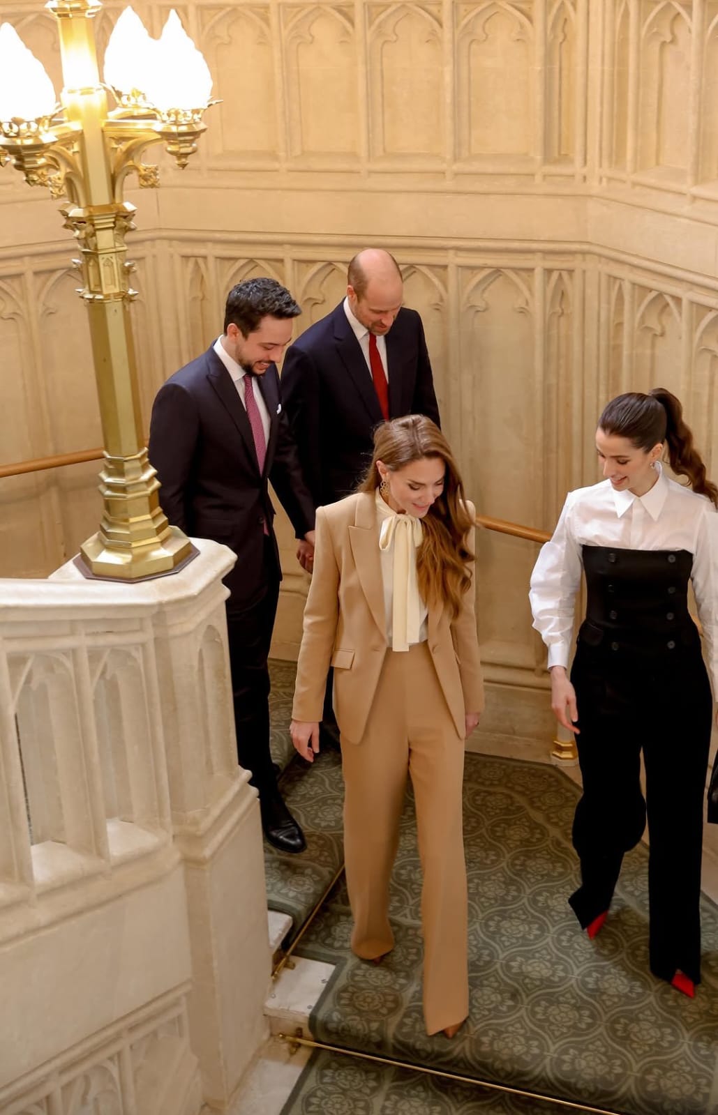 شهدت قلعة وندسور مشهداً ملكياً يفيض بالهيبة والأناقة، إذ استقبل الأمير ويليام وزوجته كيت ميدلتون، وليَّ العهد الأردني الأمير الحسين بن عبد الله الثاني وزوجته الأميرة رجوة الحسين، في أول زيارة رسمية لهما إلى بريطانيا منذ زفافهما عام 2023.