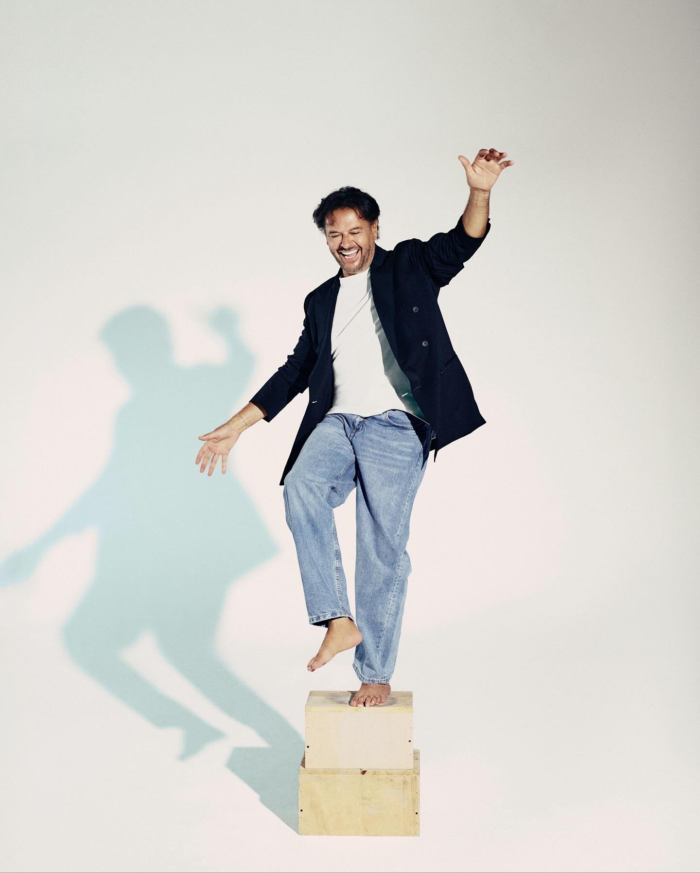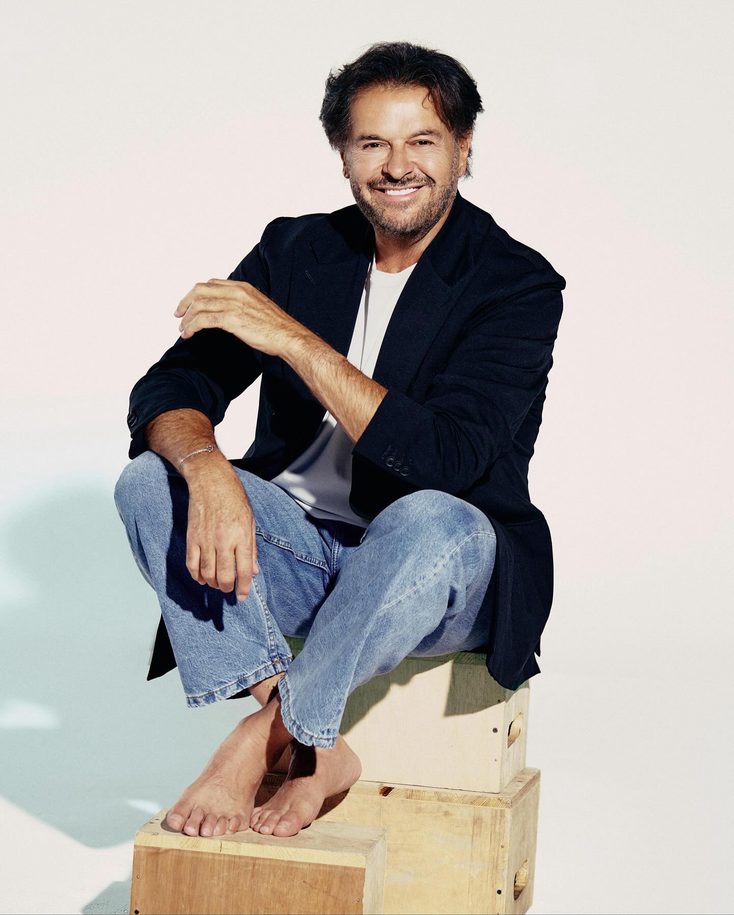 ظهر راغب (63 عاماً) في أحدث صورة ترويجية لأغنيته "خايف من إيه" بروحٍ لا تشي بعمرٍ ولا زمن، مرتدياً الجينز، وحافي القدمين... كما لو أنه يخلع عن نفسه كل ما هو زائد ليبقى هو.