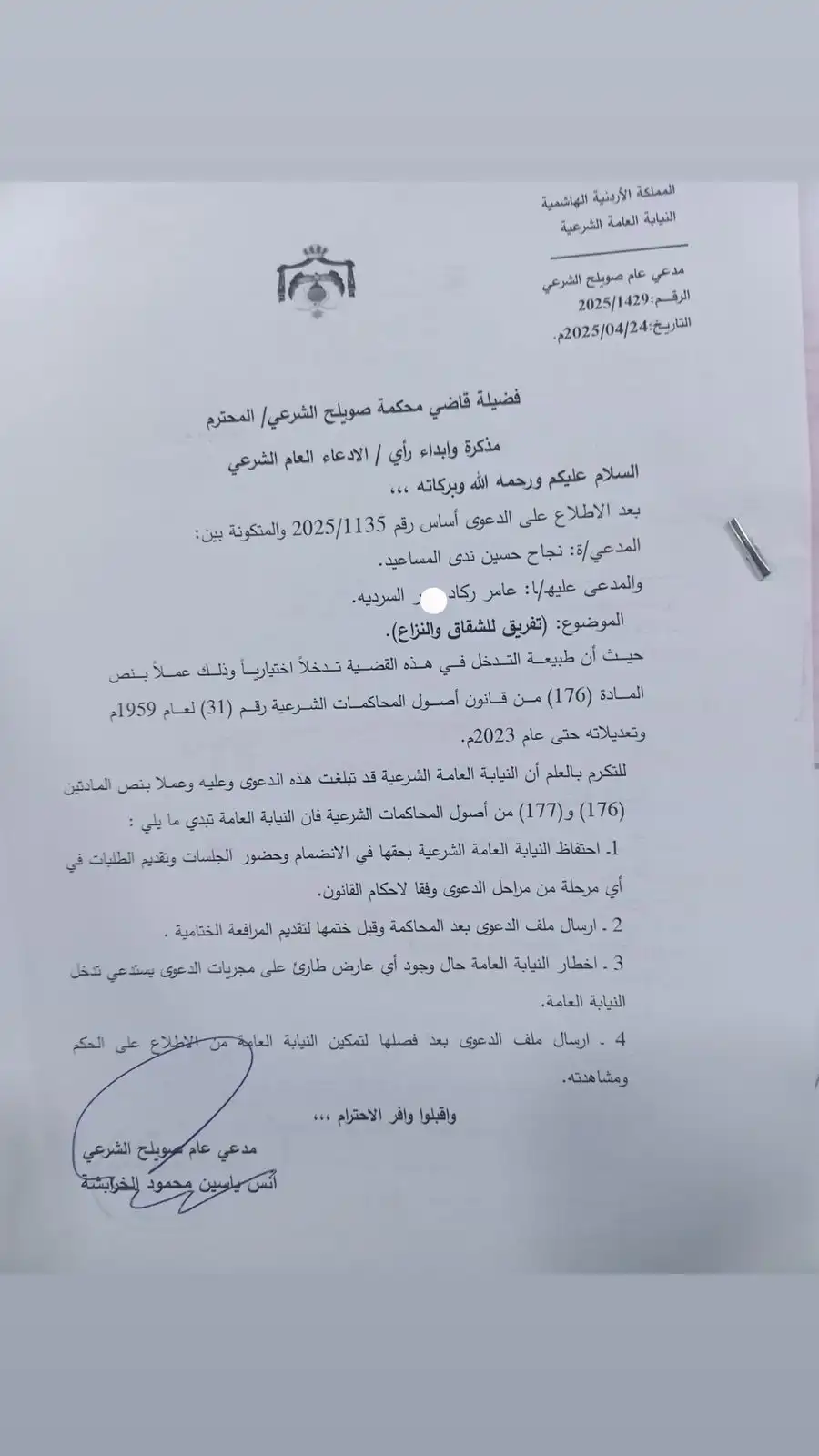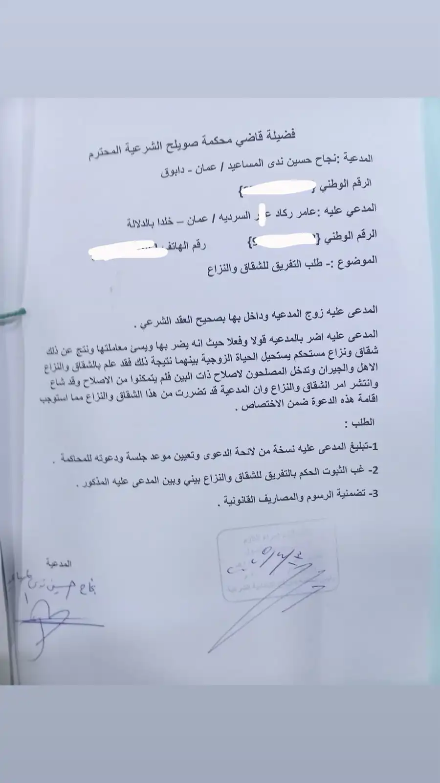 وثائق رسمية تؤكد طلب الطلاق من جانب المساعيد