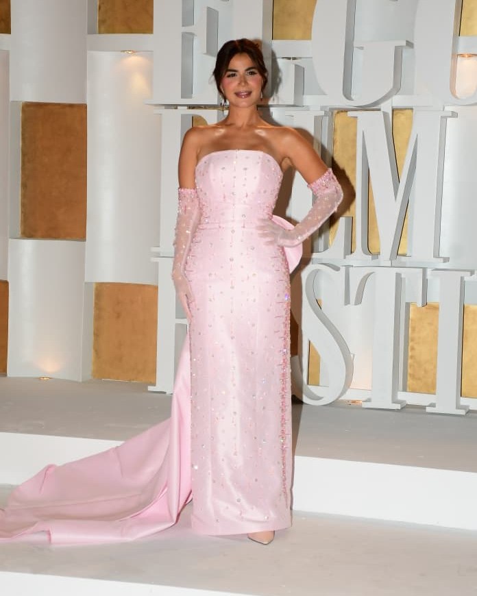 على السجادة الحمراء، بدا اللون الوردي سيّد اللحظة، يعانق القماش كهمسة حبّ تودّع المهرجان بلغة الجمال.