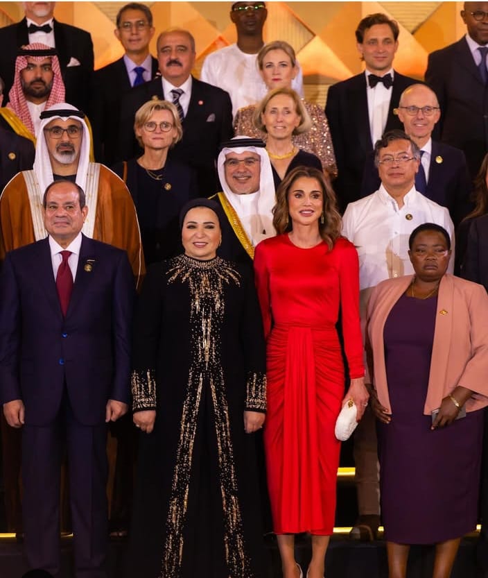 اللون الأحمر كان أكثر من مجرّد خيار جمالي؛ هو تصريح بالثقة والحضور، ولغة الأنوثة القوية التي تتقن الملكة رانيا التعبير عنها دومًا دون مبالغة.