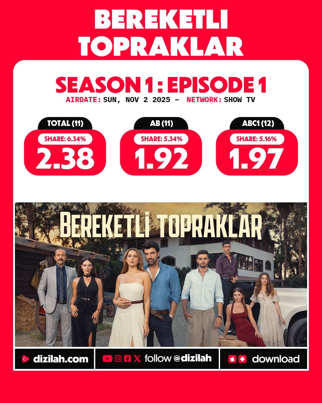 خيّبت الحلقة الأولى من المسلسل التركي الجديد "الأراضي المباركة" (Bereketli Topraklar) التوقعات، بعدما جاءت نسب المشاهدة دون المستوى المنتظر رغم الحملة الدعائية الضخمة التي سبقت العرض، ومشاركة النجم إنجين أكيوريك في بطولته.
