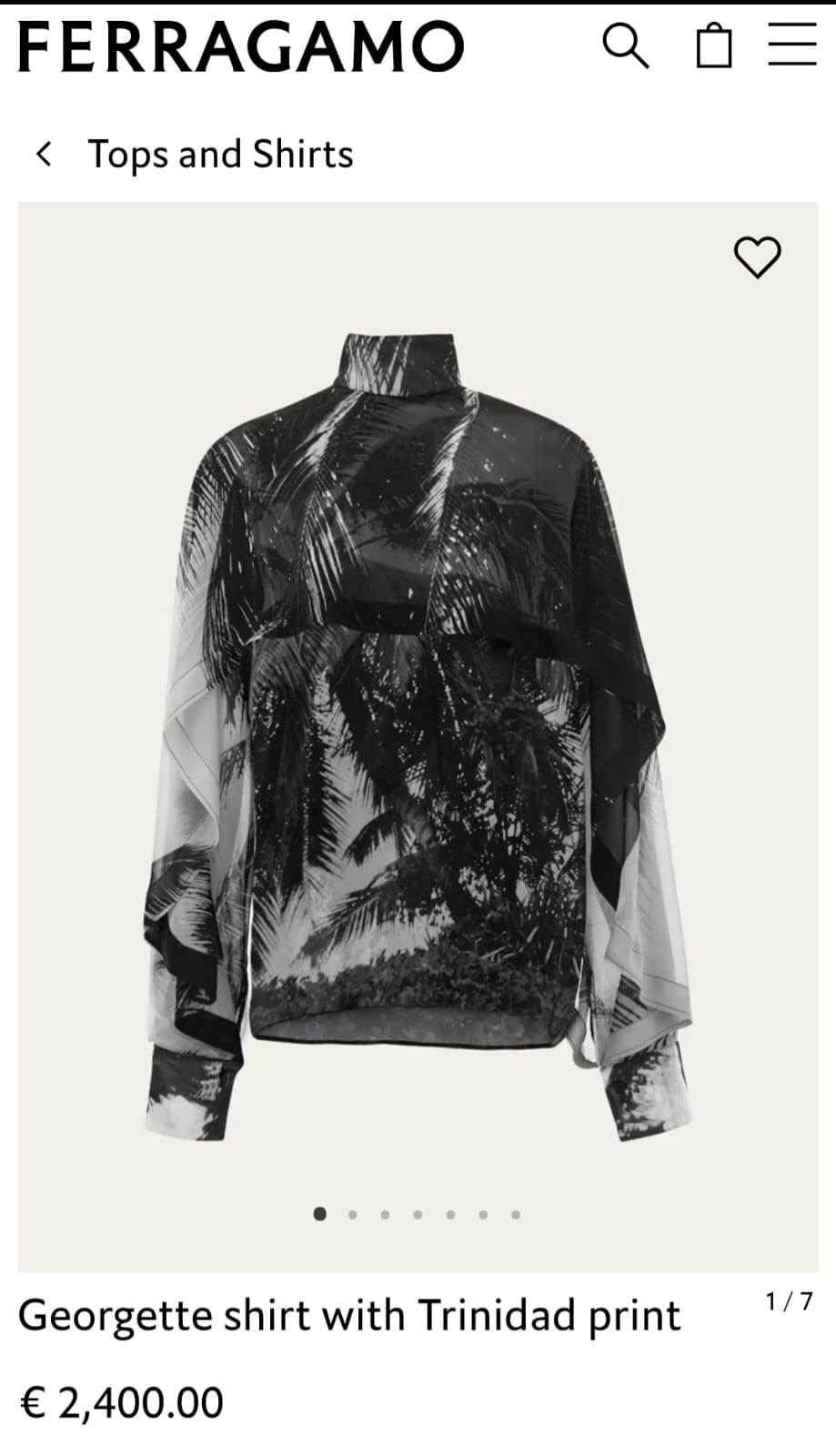 اختارت قميصًا ذا ياقة عالية وأكمام طويلة، منسوجًا برسومات أغصان النخيل الساحرة، يبلغ ثمنه 2400 يورو،