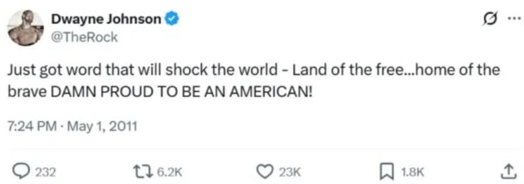 بعد 14 عاماً من الواقعة، كشف النجم الأميركي دواين جونسون "ذا روك" السر وراء معرفته بمقتل زعيم تنظيم القاعدة أسامة بن لادن قبل أن يعلن الرئيس الأميركي الأسبق باراك أوباما الخبر رسمياً للعالم.