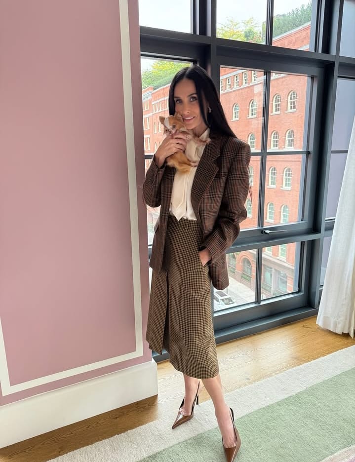 ظهرت مؤخرًا بفستان بني موكا كلاسيكي، يعكس السلطة والرقي في الوقت ذاته من فيرساتشي.