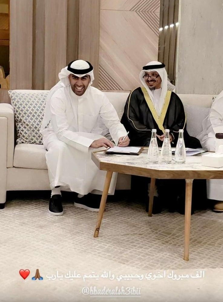 شقيقته دعاء الشعيبي شاركت بدورها بطاقة تهنئة عبر "سناب شات"، جاء فيها: "الحمد لله الذي بنعمته تتم الصالحات، تم بحمد الله عقد قران سبأ وبدر، اللهم بارك لهما وبارك عليهما واجمع بينهما في خير."