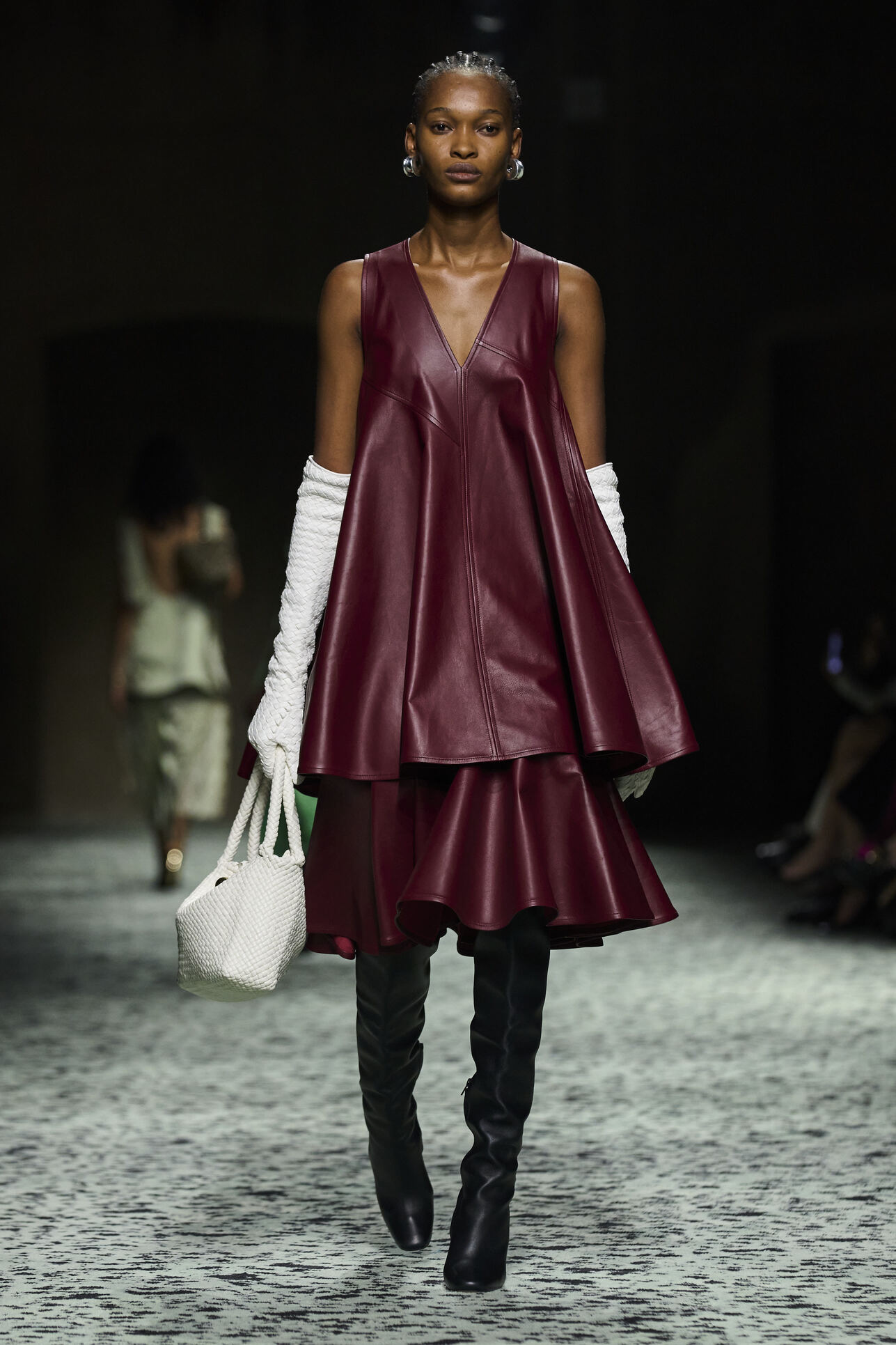 وفي عالم Bottega Veneta، ظهر البرغندي عبر الجلد المترَف، الحقائب البنيوية، والتصاميم التي تميل إلى الصمت المتقن.