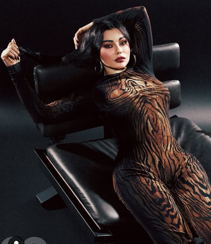 ظهرت هيفاء بجامبسوت يذكّر بجلد النمر، قطعة تحمل روح الغابة، وجرأة الحيوان المفترس. مظهر يليق برسالة القوة التي أرادت إيصالها.