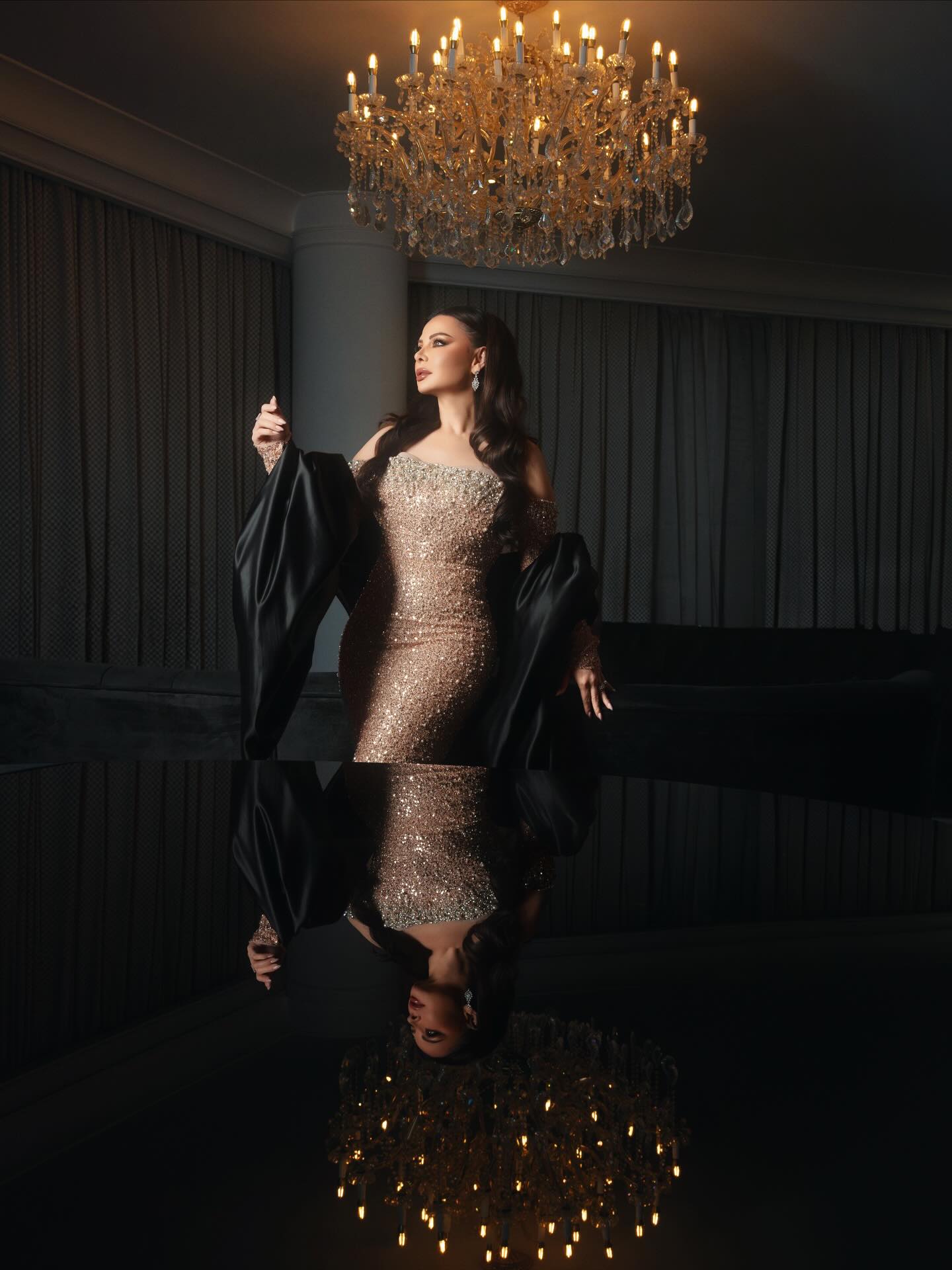 تألّقت الفنانة ديانا كرزون في أحدث إطلالة لها بثوب ذهبي فاخر من توقيع المصمم الكويتي العالمي ظاهر باقر" Thaher baqer"، الذي يعرف بحرفيته العالية واستخدامه اللامع للكريستالات، ما أكسب ثوبه البريق والتأنق الذي يشتهر به.