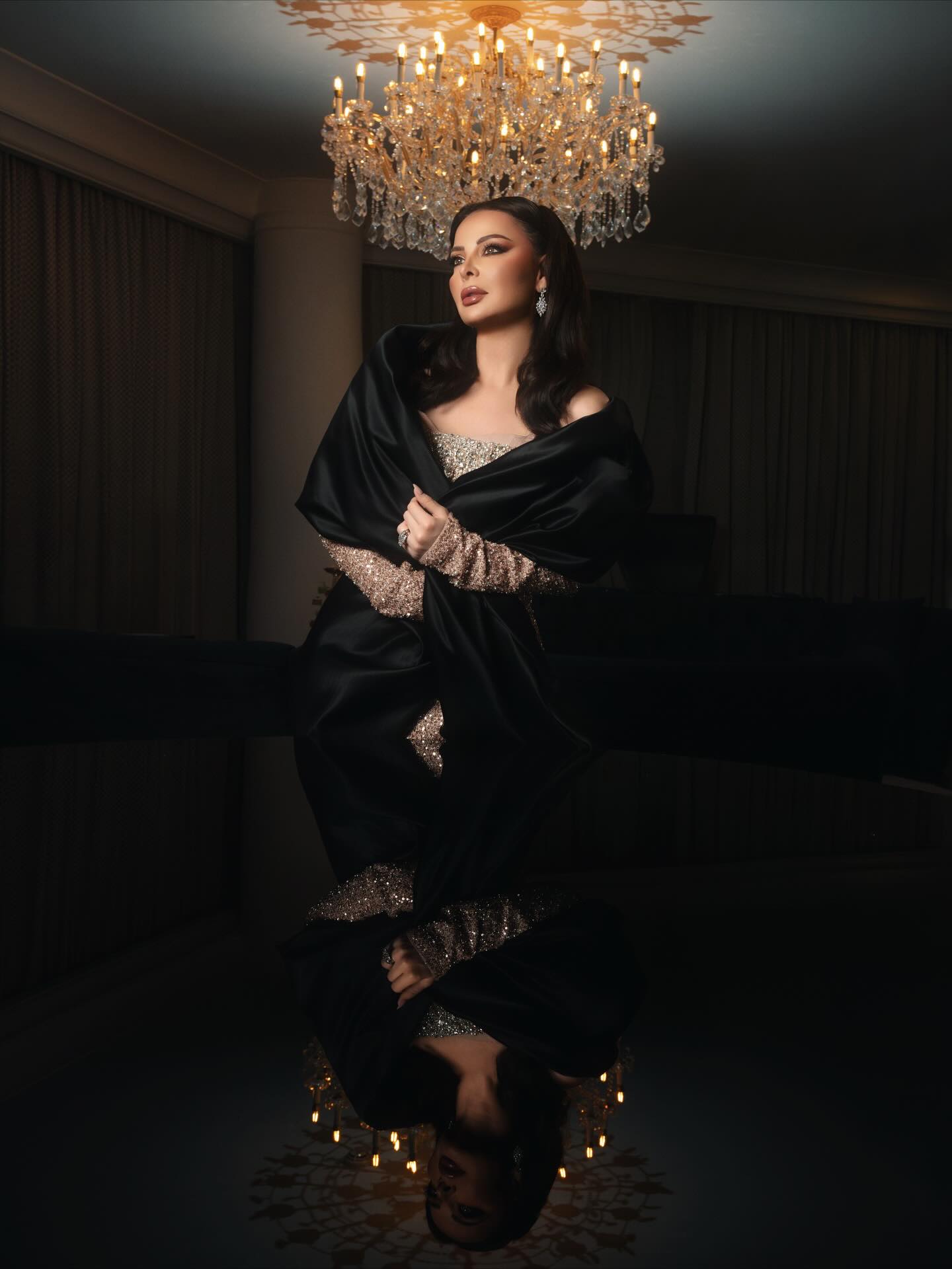 وقد شاركت ديانا صورها عبر حساباتها على إنستغرام، حيث بدت بتسريحة راقية لشعرها الأسود الطويل، ملتف إلى جهة واحدة، ينسدل بانسيابية على كتفها، مع مكياج ترابي يبرز جمال ملامح وجهها. الثوب، الذي جاء مكتملاً بالأكمام، تزينت عليه تفاصيل براقة تشهد على أسلوب المصمم الفريد، فيما أضافت لمسة عصرية من خلال وشاح أسود ملفوف حول جسدها كمعطف.