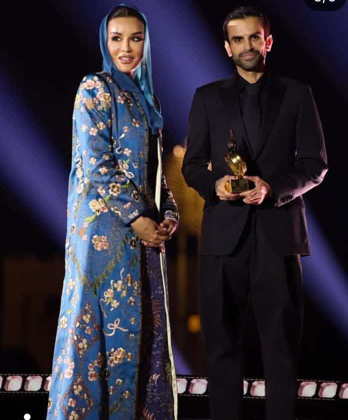 خلال الأمسية، سلّمت سموّها جائزة فئة أزياء السهرة للمصمّم السعودي زياد البوعينين الذي قدّم رؤية حديثة للترف الشرقي.