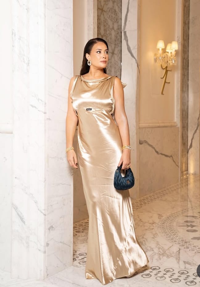 في أمسية تتلألأ فيها الأسماء اللامعة في الدوحة، سارت هند صبري بخفّة ملكة تعرف تماماً كيف تُصاغ الأنوثة على هيئة حضور. اختارت الممثلة التونسية خلال حفل Franca Fund Gala في الدوحة، فستاناً حريرياً بلون الشامبانيا، لون خافت يشبه همس الضوء الصباحي ،ينزلق على القوام برقة ويعانده بخطوط انسيابية تُبرز جماله بلا مبالغة.