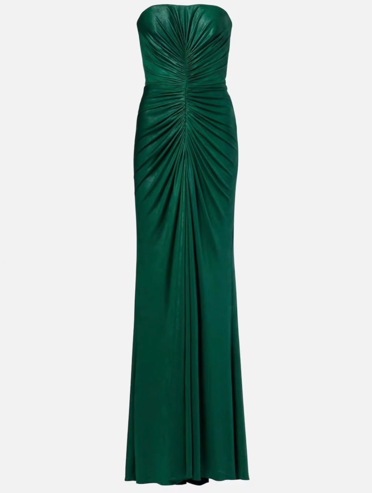 يتميز الفستان بلونه الأخضر الزمردي العميق، وهو اختيار لم يكن صدفة بالنسبة للدكتورة القواس، إذ يحمل هذا اللون دلالة رمزية قوية كونه اللون الذي يزين الراية السعودية، ما جعل إطلالتها تحية فنية أنيقة للمملكة في يومها الوطني.