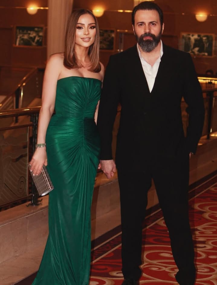 وفاء الكيلاني نسّقته مع طقم ماسي مرصّع بحجر زمردي كبير من Paolo Bongia، مانحة الإطلالة لمسة فخمة تُظهر جمال الثوب بطريقة مختلفة عن طريقة ميلانيا التي اعتمدت أسلوباً أكثر بساطة في تنسيقه.