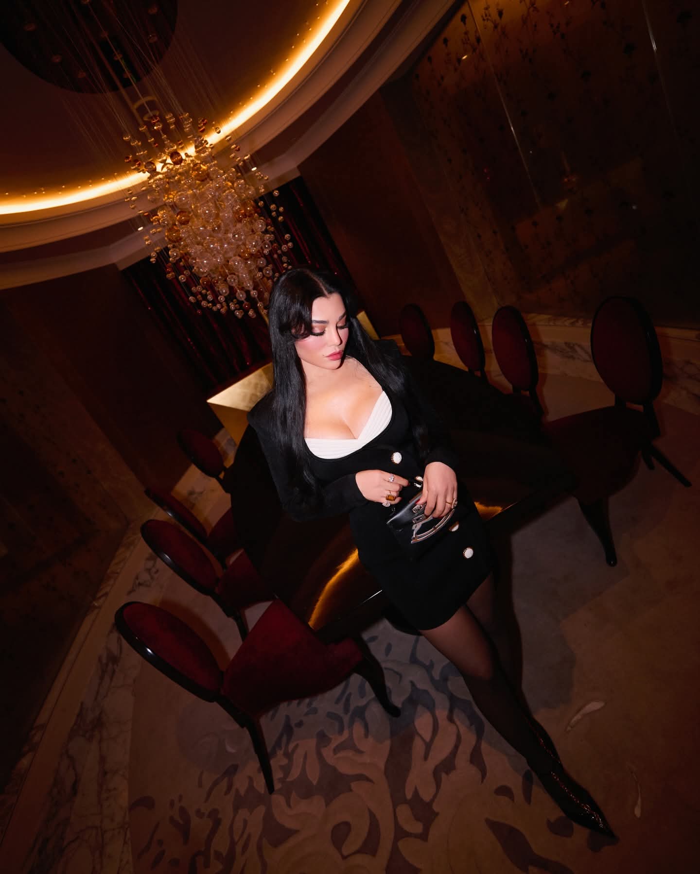 الإطلالة اتسمت بلمسة جريئة ولكن راقية، مزيج من العصرية والأنوثة، وقد تكرّست بجماليات المكياج المسائي الذي أضفى على وجهها وهجاً خاصاً، مع تسريحة شعر انسيابية تليق بحركة المكان والأضواء.