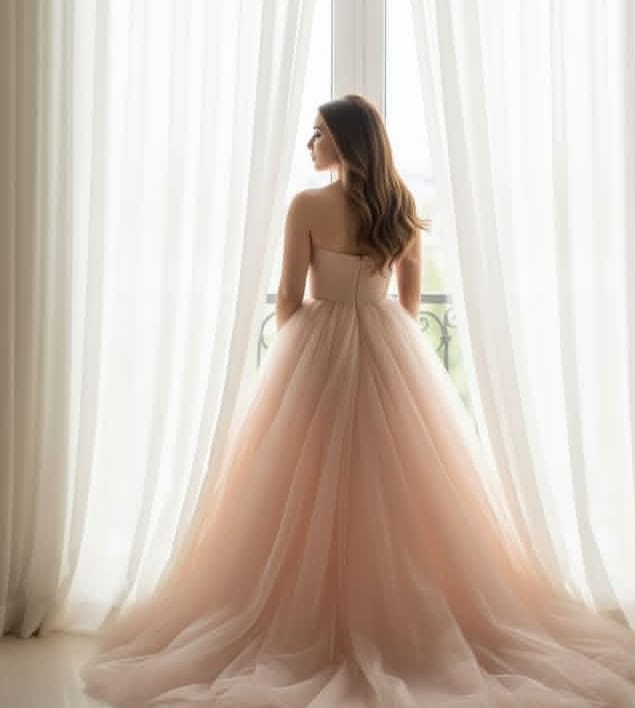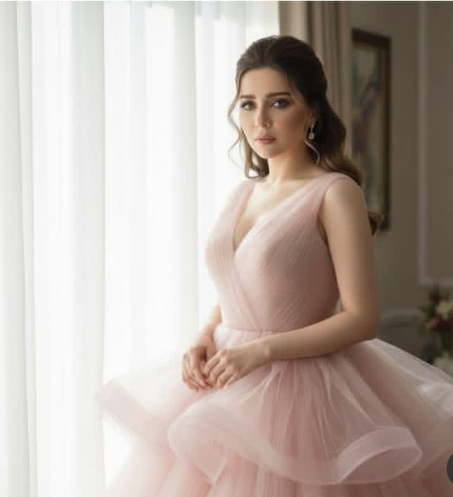 ظهرت مي بفستان وردي ناعم، مصنوع من طبقات شفافة تتنقّل بخفة وكأنها جزء من قصة حالمة. مكياج هادئ يلامس الملامح برقة، وتسريحة ويفي واسعة تنسدل على كتفيها كأنها امتداد لروحها الناعمة.