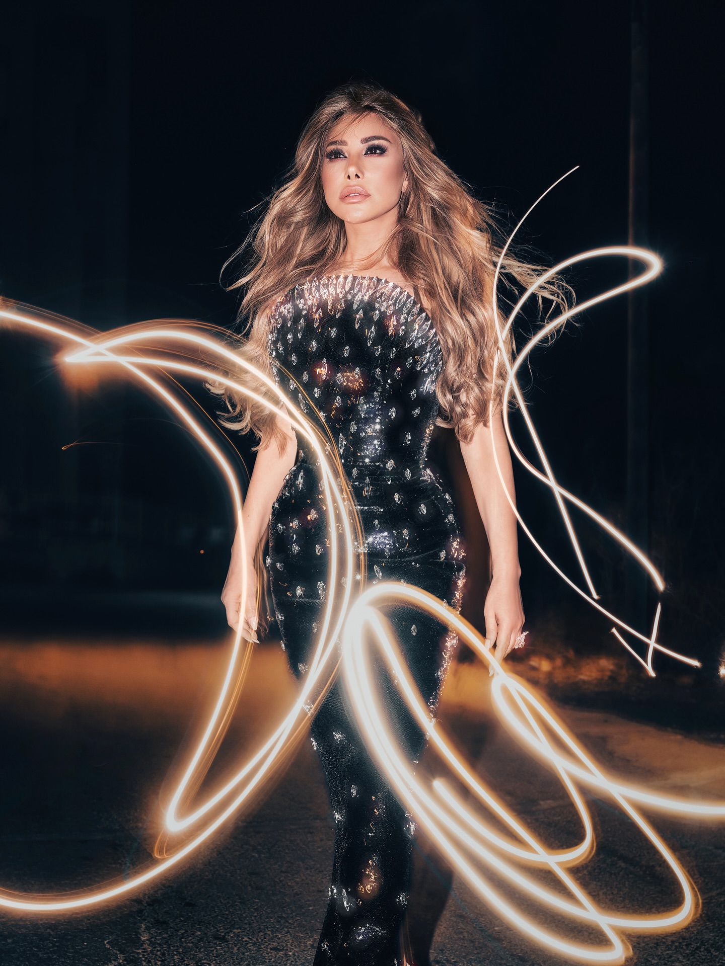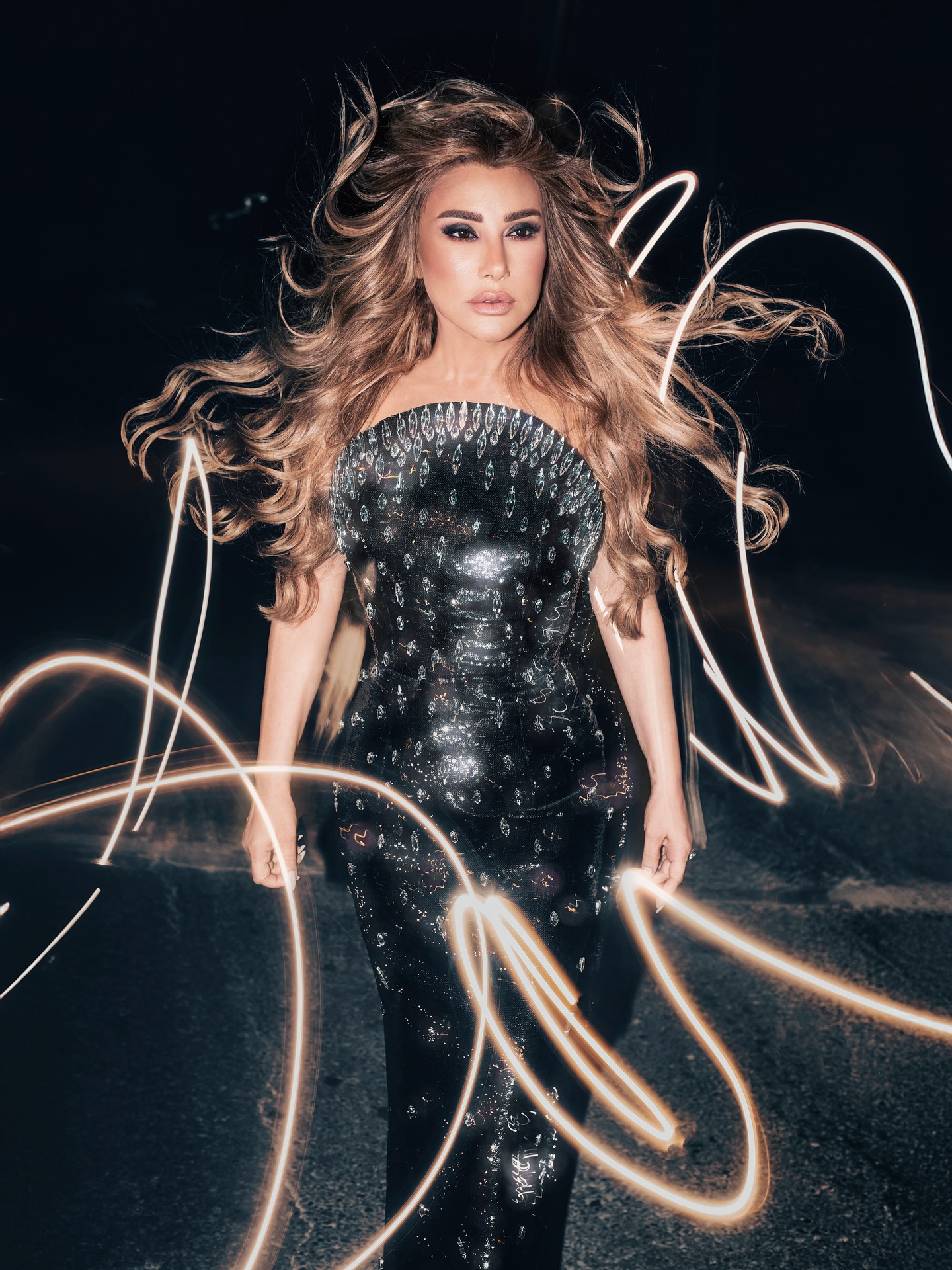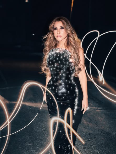 كغيمة ليلية تعبر هدوء المساء، أطلت نجوى كرم بثوب أسود مرصّع بشواروفسكي، يحوّل الظلام إلى بريق، ويجعل من حضورها مشهداً يتهادى بين الأناقة والدهشة.