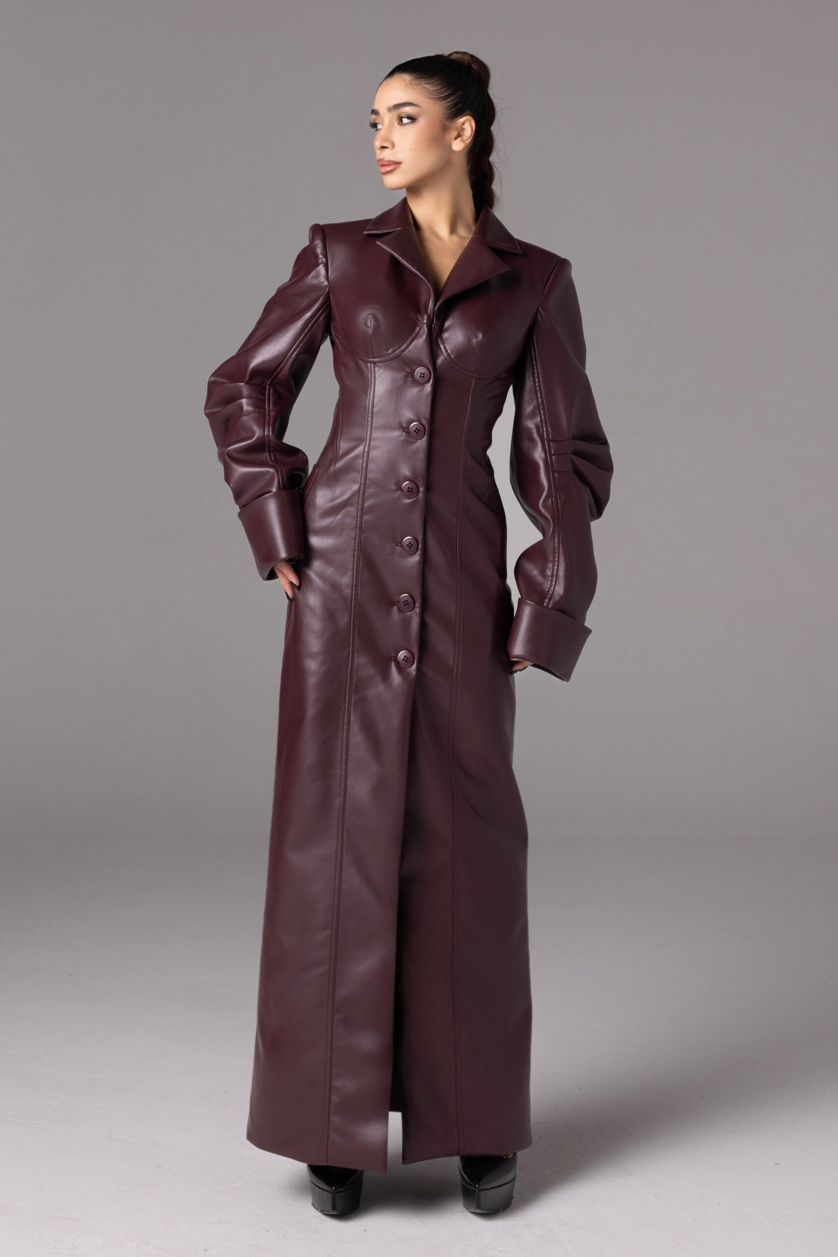 كل تصميم يحمل توقيعها الواضح: خطوط نظيفة، خامات مدروسة، وجاذبية لا تنتمي إلى الصدفة بل إلى رؤية متماسكة.