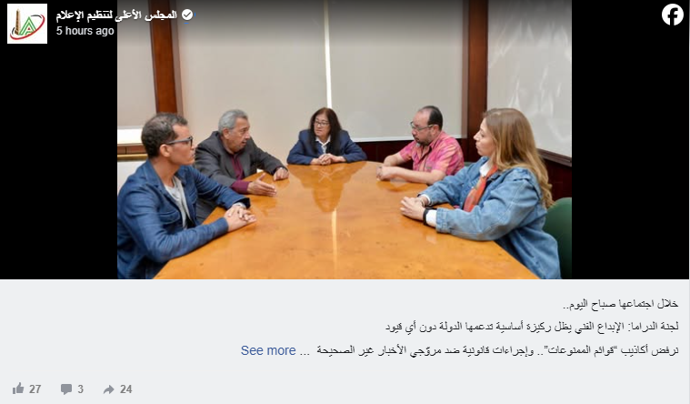 أعربت لجنة الدراما عن أسفها لما وصفته بـ انعدام المهنية لدى بعض المنصات الإعلامية التي لم تلتزم بالقواعد الصحفية بوجوب التحقق من المعلومات عبر الرجوع إلى المصادر الرسمية. وأشارت إلى أن هذه المنصات تجاهلت النفي الصريح الصادر عن رئيسة اللجنة وعدد من أعضائها. وفي ختام بيانها، أكدت اللجنة أنها ستتخذ إجراءات قانونية حاسمة ضد أي جهة أو فرد يروج لمعلومات غير صحيحة وينسبها للجنة أو للمجلس الأعلى للإعلام.