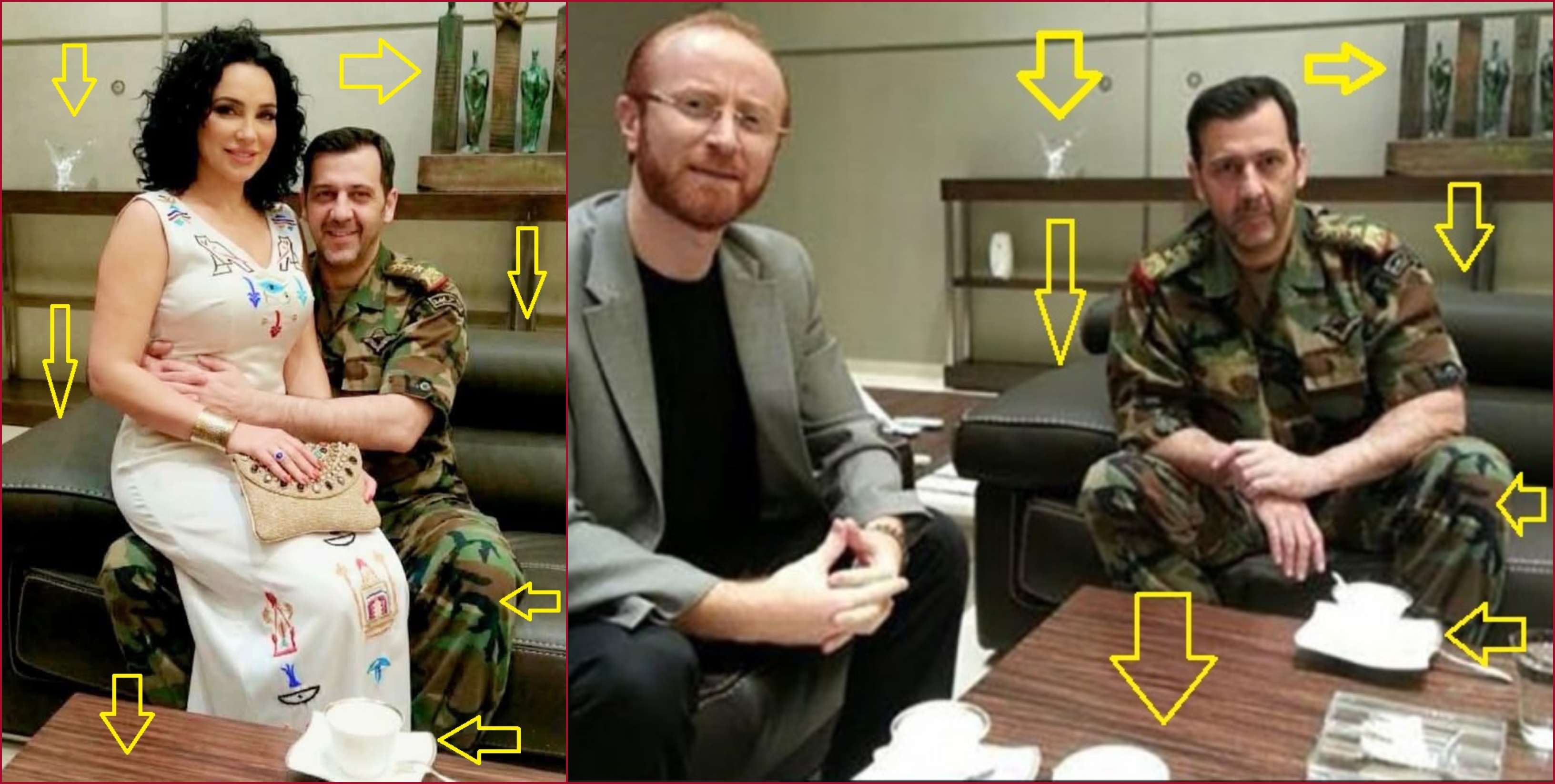 المتداول: صورة "مسرّبة"، وفقاً للمزاعم، تظهر "ماهر الاسد، شقيق الرئيس السوري المخلوع بشار الاسد، في جلسة حميمة مع الفنانة السورية سلاف فواخرجي". الا أنّ هذا الزعم غير صحيح.