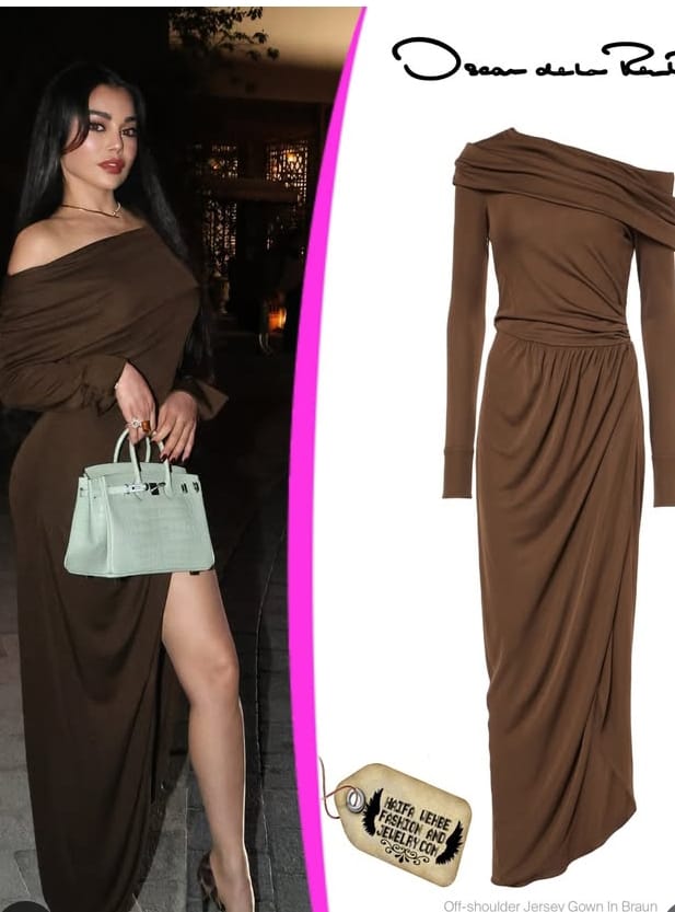 خلال زيارتها لإحدى العيادات في دبي، خطفت الأنظار بإطلالة تؤكّد مرّة جديدة أن الأناقة بالنسبة إليها ليست مناسبة… بل أسلوب حياة. فقد ظهرت بثوب بني فاخر من Oscar de la Renta (أوسكار دي لارنتا) يبلغ سعره 4490 دولاراً، بقصّة تنساب على الكتف بنعومة، وتحتضن الجسم بترفٍ هادئ.