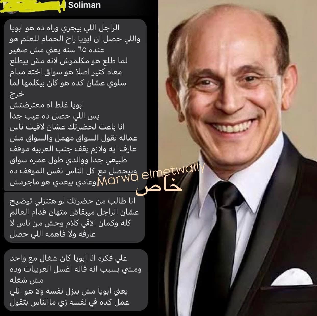 أثار فيديو متداول للفنان المصري محمد صبحي، وهو يوبّخ سائقه ثم ينطلق بالسيارة تاركاً الأخير يجري خلفها، موجة من الجدل عبر مواقع التواصل، وسط اتهامات للسائق بالإهمال واتهامات للفنان بسوء التصرف مع سائقه أمام عدسات المصورين. ومع تضخّم التعليقات، خرج نجل السائق ليروي روايتهم الكاملة ويوضح ما جرى بالفعل.