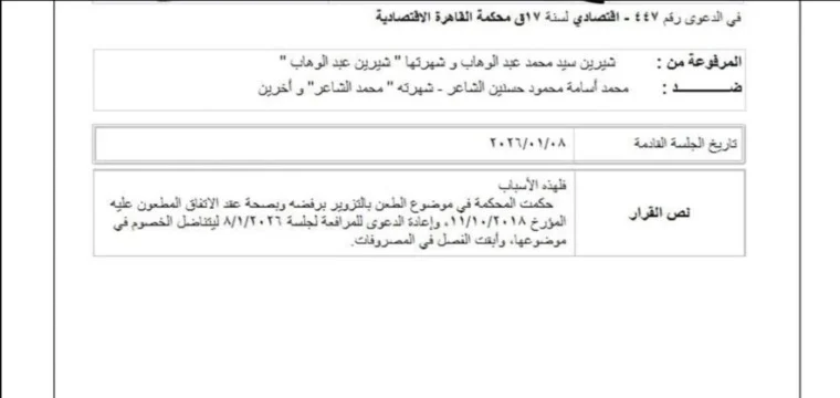 وحددت المحكمة جلسة جديدة للنظر في تطورات القضية في 8 يناير/كانون الثاني 2026.