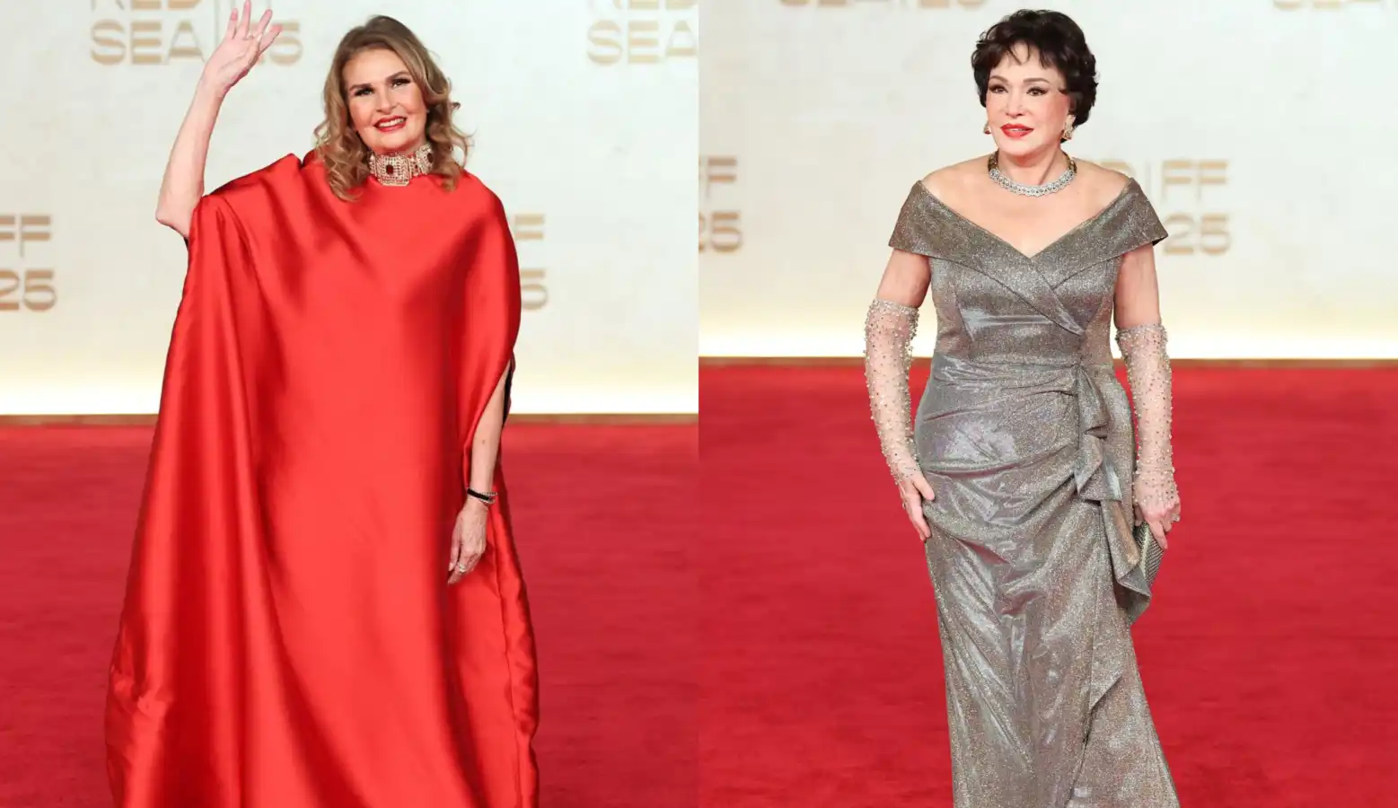 تألقت النجمة لبلبة بفستان فضي لامع لفت الأنظار ببريقه المعتاد، بينما اختارت النجمة يسرا فستاناً أحمر من الساتان اللامع بقصة فضفاضة بطابع الكاب، مانحة السجادة الحمراء حضوراً مفعماً بالأناقة.