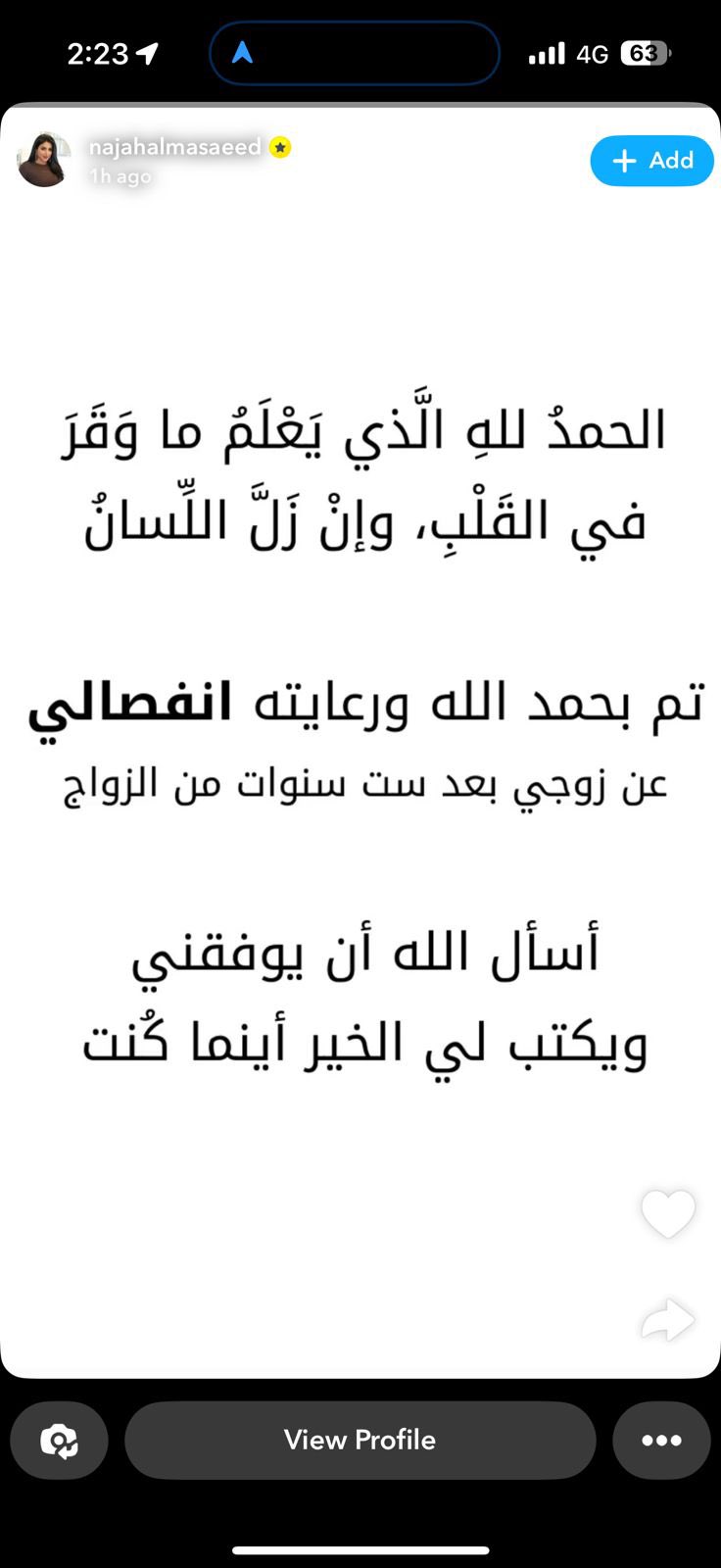 وكشفت مصادر مطلعة في تصريح لـ«جفرا نيوز» أن نجاح المساعيد تقدّمت بقضية خلع ضد زوجها أمام المحاكم المختصة، ليتم لاحقًا إقرار الطلاق بشكل رسمي بين الطرفين.