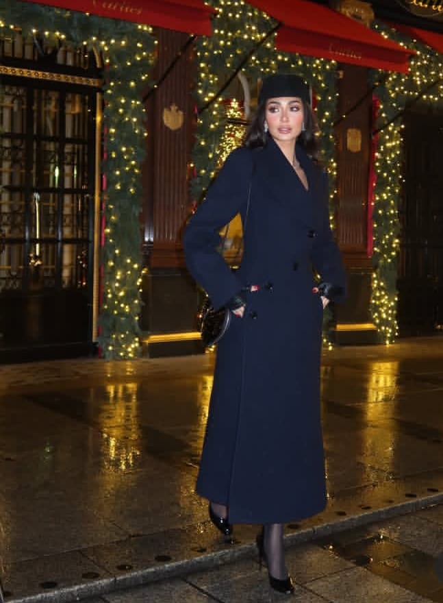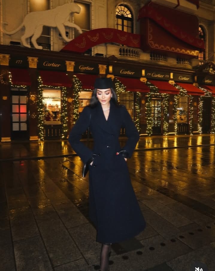 في إطلالة شتوية تحمل توقيع Maison Alaïa، اختارت نور الغندور الأسود الكامل. معطف طويل بقصّة رسمية، غطاء رأس صوفي أضفى غموضاً كلاسيكياً، حقيبة كتف وقفازات جلدية تكشف الأصابع… تفاصيل دقيقة صنعت لوكاً راقياً يوازن بين الحداثة والدراما الهادئة.