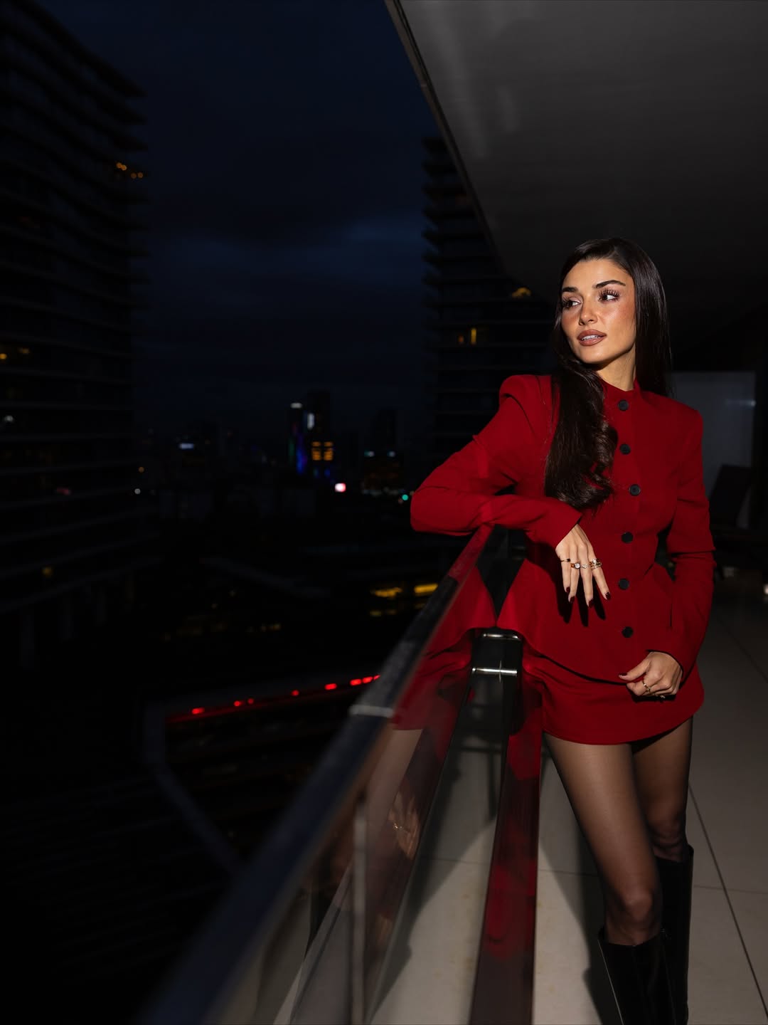 كما سبق لها أن اعتمدت هذا الأسلوب بإطلالة بالبدلة الحمراء التي جسدت مثالاً يجمع بين الرقي والحداثة، مع لمسات عصرية مثل تكديس الخواتم، ما يثبت أن هاندا تعرف كيف تجعل كل بدلة أكثر من مجرد قطعة ملابس، بل بيانًا للأناقة الشخصية.