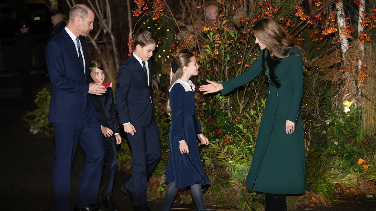 ظهر أفراد العائلة بإطلالات أنيقة ومتناسقة؛ إذ ارتدى الأمير جورج والأمير لويس بدلات زرقاء داكنة مع قمصان بيضاء، فيما تألقت الأميرة شارلوت بفستان أزرق داكن بياقة بيضاء. واختارت كيت ميدلتون معطفاً باللون الأخضر الشتوي، انسجم مع ربطة عنق الأمير جورج، بينما حملت ربطة عنق الأمير لويس درجات من الأخضر والأزرق.