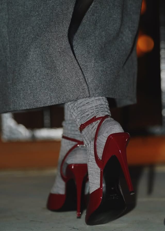 المثير في الإطلالة كان تنسيقها غير المتوقع، حيث كسرت روح الشتاء بالحذاء الصيفي البرغندي، مع جوارب صوفية رمادية لتضيف بعدًا غريبًا ومثيرًا للانتباه. أكملت الإطلالة بحقيبة بنفس لون الحذاء، بينما حملت قفازات بيضاء ناعمة، لتضيف لمسة من النقاء والتباين اللوني.