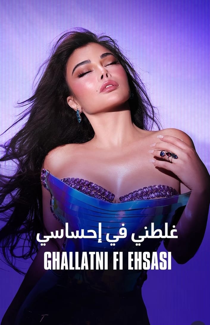 في «غلطني إحساسي»، الرومانسية الممزوجة بالإبهار، جاءت الصورة كإعلان عن “ميغا هيفاء 2”. الأزرق الجدلي، المعدني، المضيء… بريق يلف الجسد، وكأنها كائن قادم من فضاء الشغف، بعينين سابحتين في الحلم، وجمال يبرق تحت الضوء.