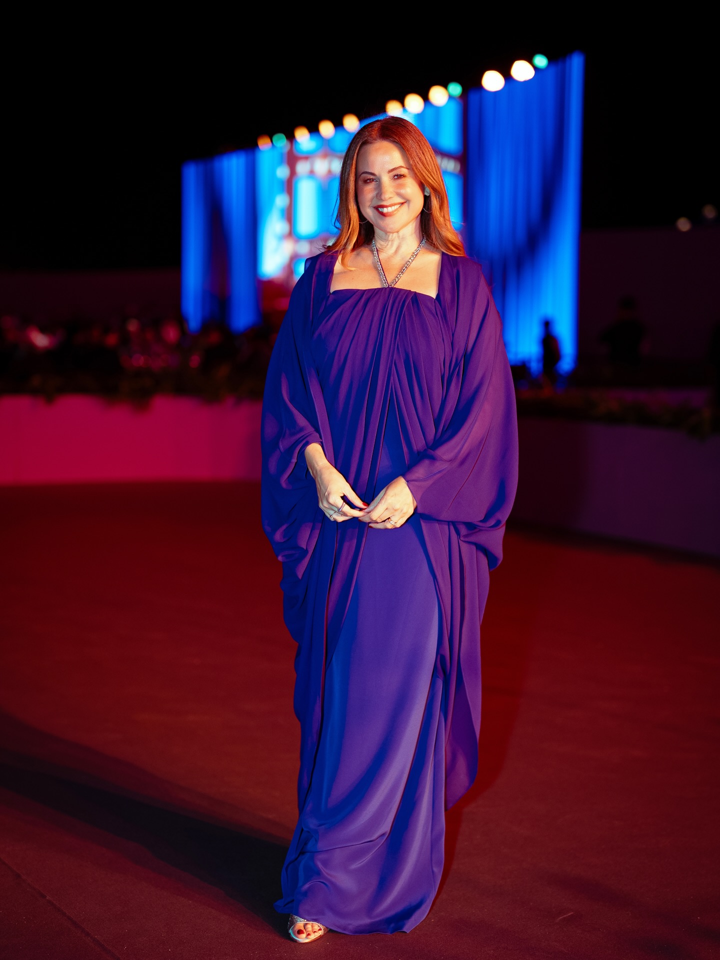 بدت ريا أبي راشد، إعلامية تعرف مكانها جيدًا، امرأة ناضجة في خياراتها، وحاضرة على السجادة الحمراء بذات الثبات الذي تحمله إلى مقابلاتها… حضورٌ يثبت نفسه، ويلمع بهدوء من يعرف كل نجوم هذا العالم، لأنّه كان جزءًا من قصصهم.