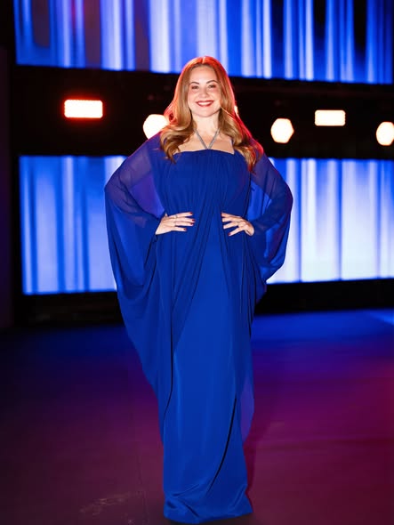 في إطلالتها، اختارت ريا فستانًا نيليًا ممشوقًا من توقيع المصمم العالمي ستيفان رولاند، جاء منسدلًا بطول أنيق، ينساب على الجسد بخفّة مدروسة. خامات الشيفون الشفافة لفّت القوام كأنها بطانة ثانية، مانحة الثوب حركة شاعرية ونعومة راقية، فيما أتت الأكمام الواسعة والرقيقة أشبه بأوشحة هوائية، تضيف بعدًا دراميًا هادئًا يعكس نضج الإطلالة لا استعراضها.