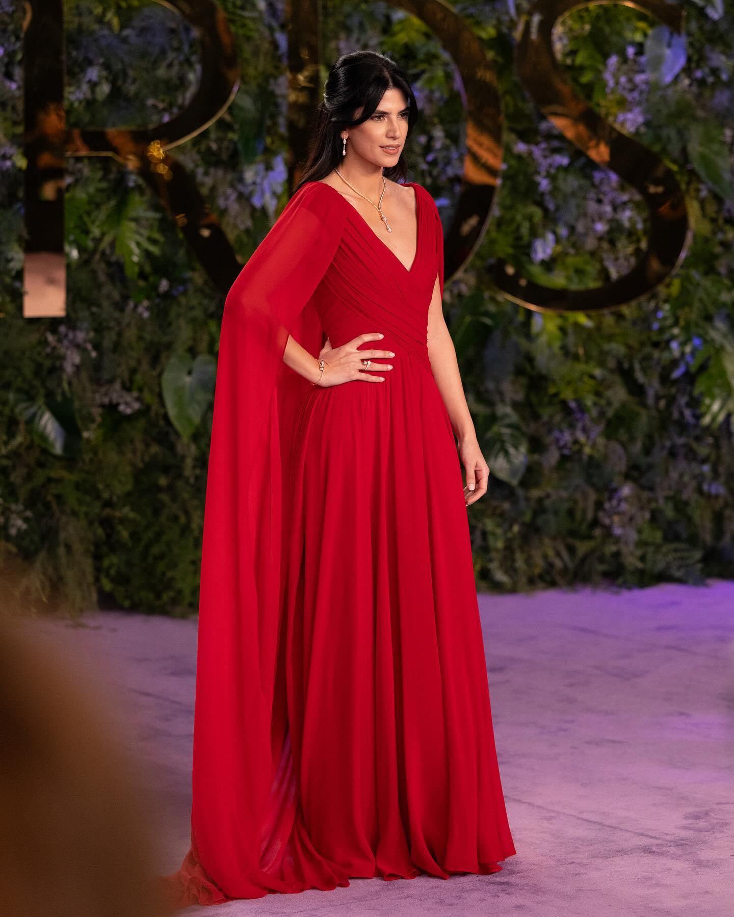 لا يمكن الحديث عن أناقة كارمن بصيبص دون التوقف عند حضورها في احتفالية "بولغاري" (Bvlgari)، والتي حملت عنوان ليلة لا تُنسى. اختارت كارمن فستانًا أحمر نارياً من تصميم كريكور جابوتيان (Krikor Jabotian)، مزودًا بقصة "أوف شولدر" وزمزمات نحتت القوام بذكاء، مع فتحة جانبية جريئة أضفت لمسة عصرية على التصميم الكلاسيكي.