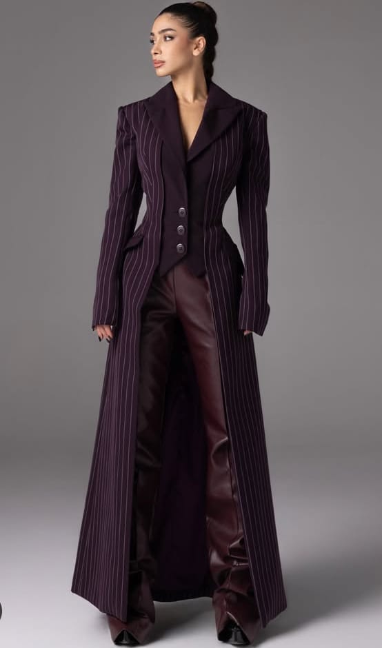 ابنة الفنانة نوال الزغبي، الموصوفة بالأناقة والحضور، لا تكتفي بالإرث، بل تحذو في الابتكار مسارًا خاصًا، وتنسج لنفسها لغة تصميمية واضحة المعالم. هوية تقوم على حدّة مدروسة، تجمع بين الثياب الممشوقة الملاصقة للجسم، وبين لوحة لونية اختصرتها بذكاء بين الأسود والبرغندي، بلونين كثيفين، داكنين، يحملان في طياتهما قوة وأناقة معًا.