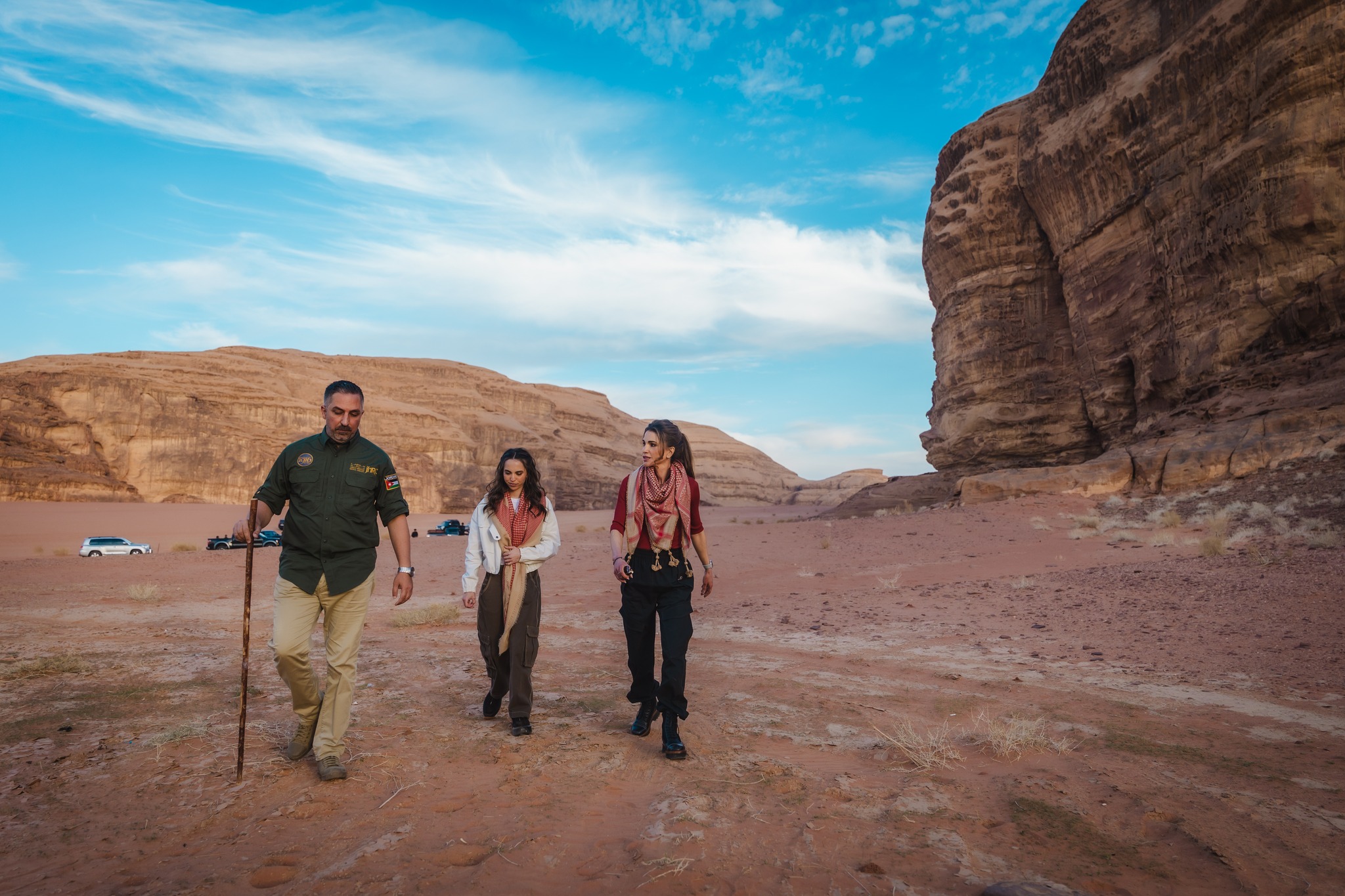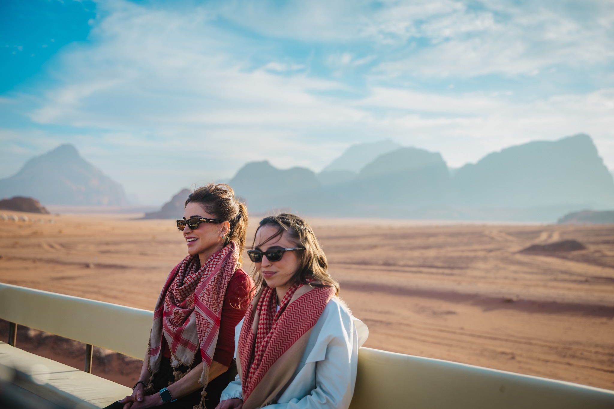 الرحلة لم تقتصر على المشي بين الرمال أو التقاط الصور، بل بدأت من محطة قطار «الثورة العربية الكبرى»، حيث استحضرت الملكة رانيا والأميرة سلمى إرثًا تاريخيًا يتجاوز الزمن، واطّلعتا على جهود إحياء التراث التي تمنح السياحة الأردنية نكهتها الخاصة. ومن سكون التاريخ، انتقلتا إلى صخب المغامرة، فركبتا السيارات الرباعية الدفع التي شقّت طريقها فوق الرمال الحمراء، وشاهدتا عروض متسلّقي الجبال الذين يطوّعون الصخر في واحد من أجمل المواقع المدرجة على قائمة التراث العالمي.