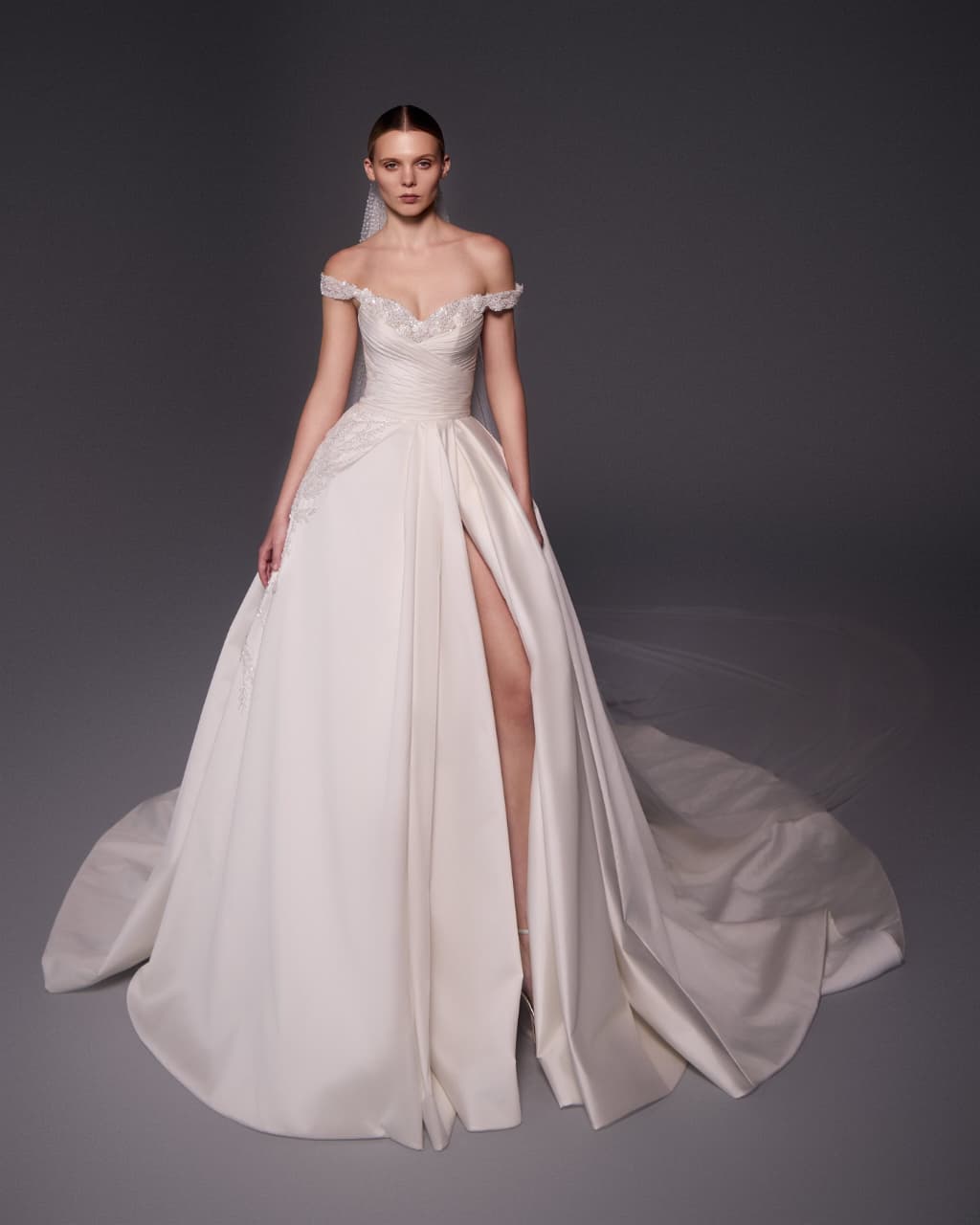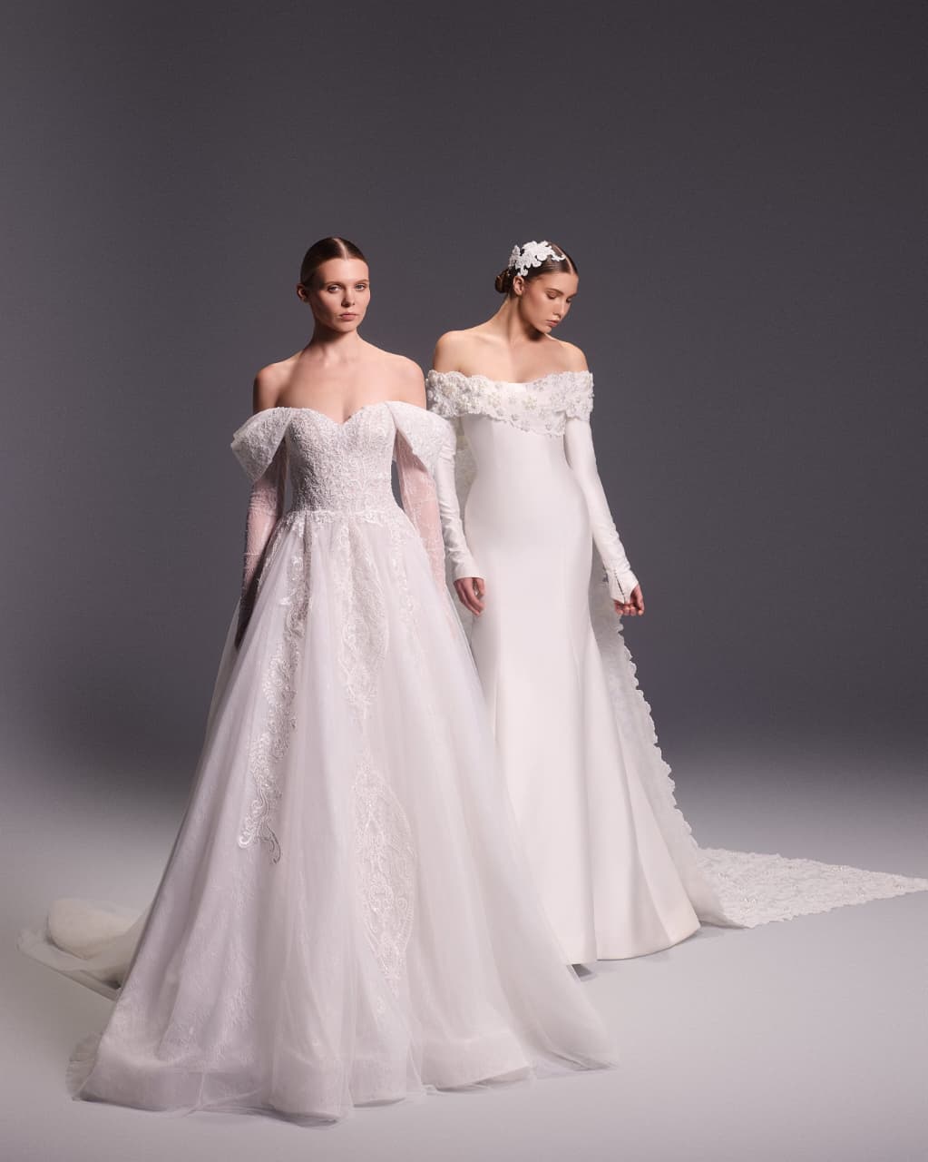تضمنت المجموعة تنوعاً غنياً في القصات لتلبي تطلعات كل عروس باختلاف ذوقها؛ حيث برزت قصة "Mermaid Cut" التي تبرز أنوثة القوام وانسيابيته، إلى جانب قصة "A Cut" التي تمنح العروس مظهراً كلاسيكياً ناعماً. ولم تغب فساتين "Puffy Cut" الضخمة عن المجموعة، لتعكس شخصية العروس الملكية والواثقة، مع إضافة لمسات عصرية مثل "الكاب" الذي يمنح العروس طابعاً من القوة والأناقة الخالدة.