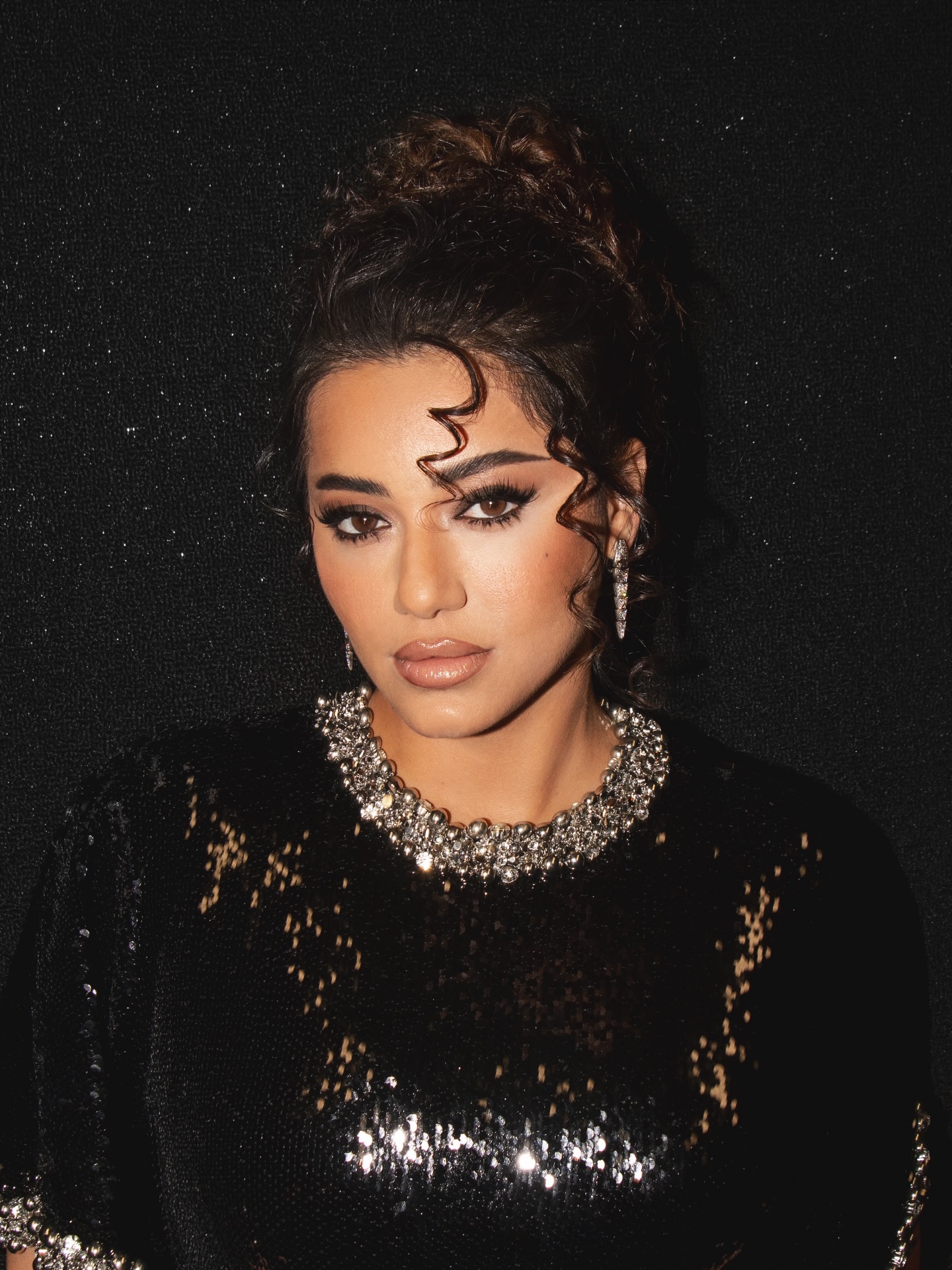 العمل الجمالي لم يقتصر على الثوب فحسب، بل كان متناغماً مع تسريحة الشعر المرفوع التي تترابط مع خصلات ناعمة تتساقط حول الوجه، بينما بدت العيون دخانية تضيف عمقاً للطلّة، والشفاه هادئة لتوازن الجرأة مع الرقي، مكملة بالمجوهرات الفاخرة من دار بولغاري التي أضافت لمسة من الفخامة الملكية. الإطلالة برمتها بدت وكأنها منحوتة فنية، تجمع بين الجرأة والأناقة الكلاسيكية في توازن ساحر.